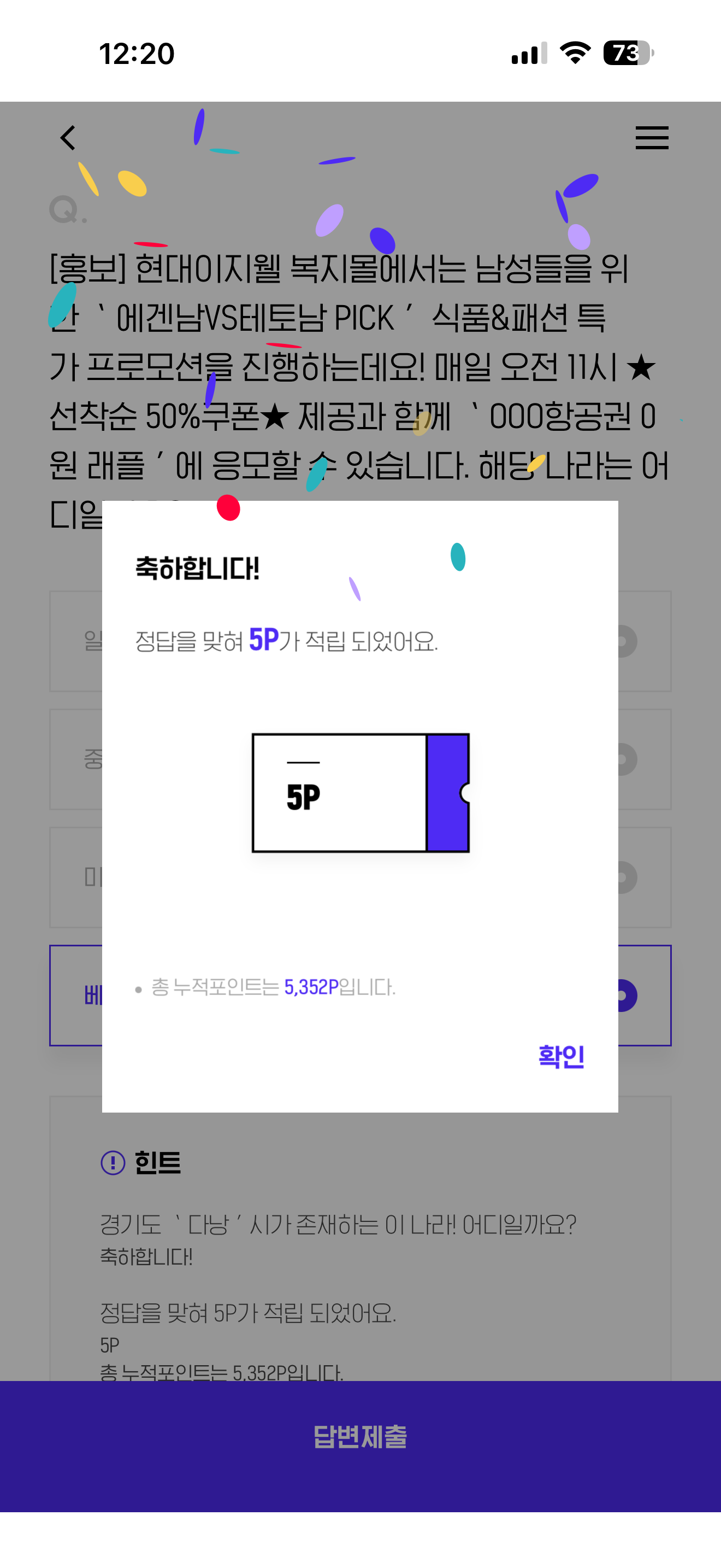 현대이지웰 복지몰에서는 남성들을 위한 ' 에겐남VS테토남 PICK ' 식품&패션 특가 프로모션을 진행하는데요! 매일 오전 11시 선착순 50%쿠폰 제공과 함께 ' 000항공권 0원 래플 ' 에 응모할 수 있습니다. 해당 나라는 어디일까요? 보기는 1. 일본 2. 중국 3. 미국 4. 베트남 입니다