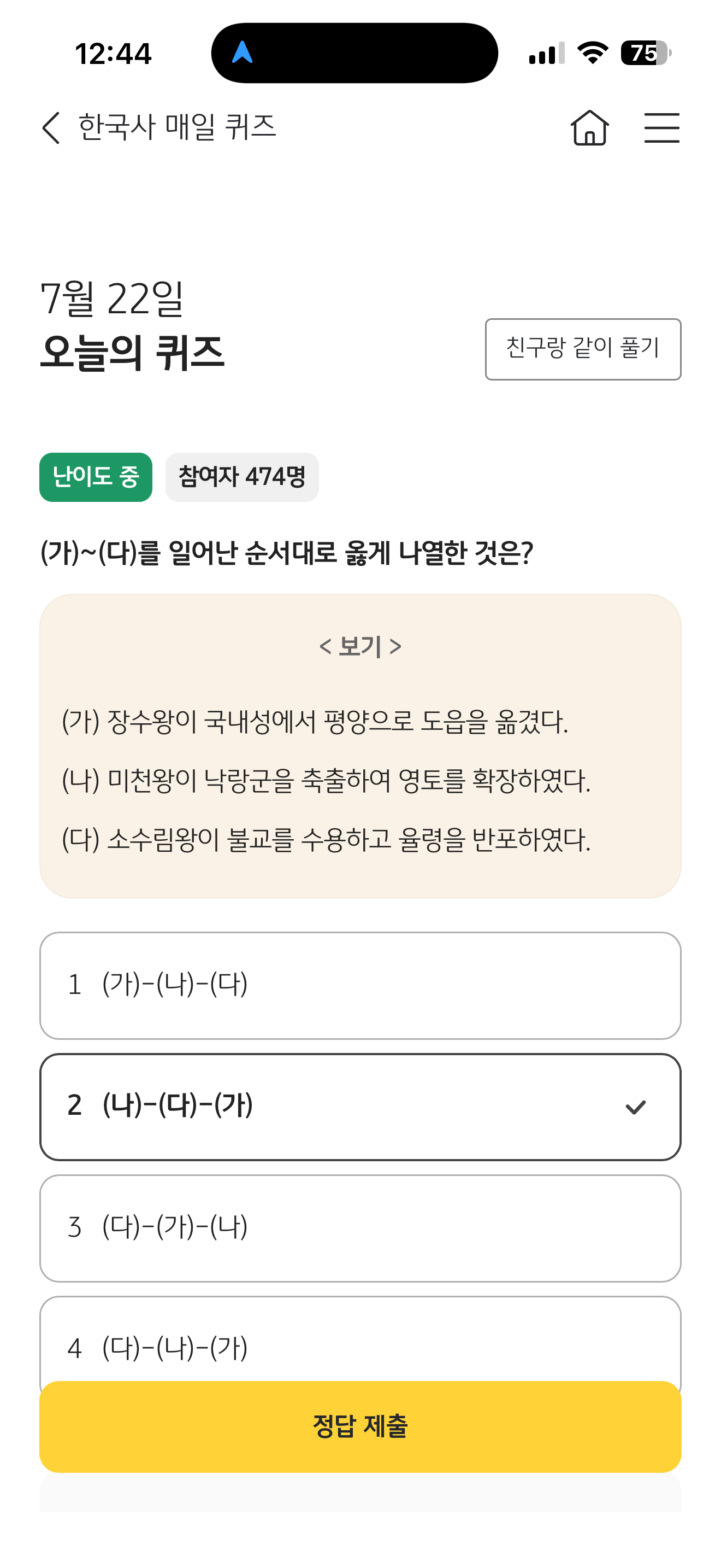 KB스타뱅킹 한국사 매일 퀴즈 정답은 (나)-(다)-(가) 입니다