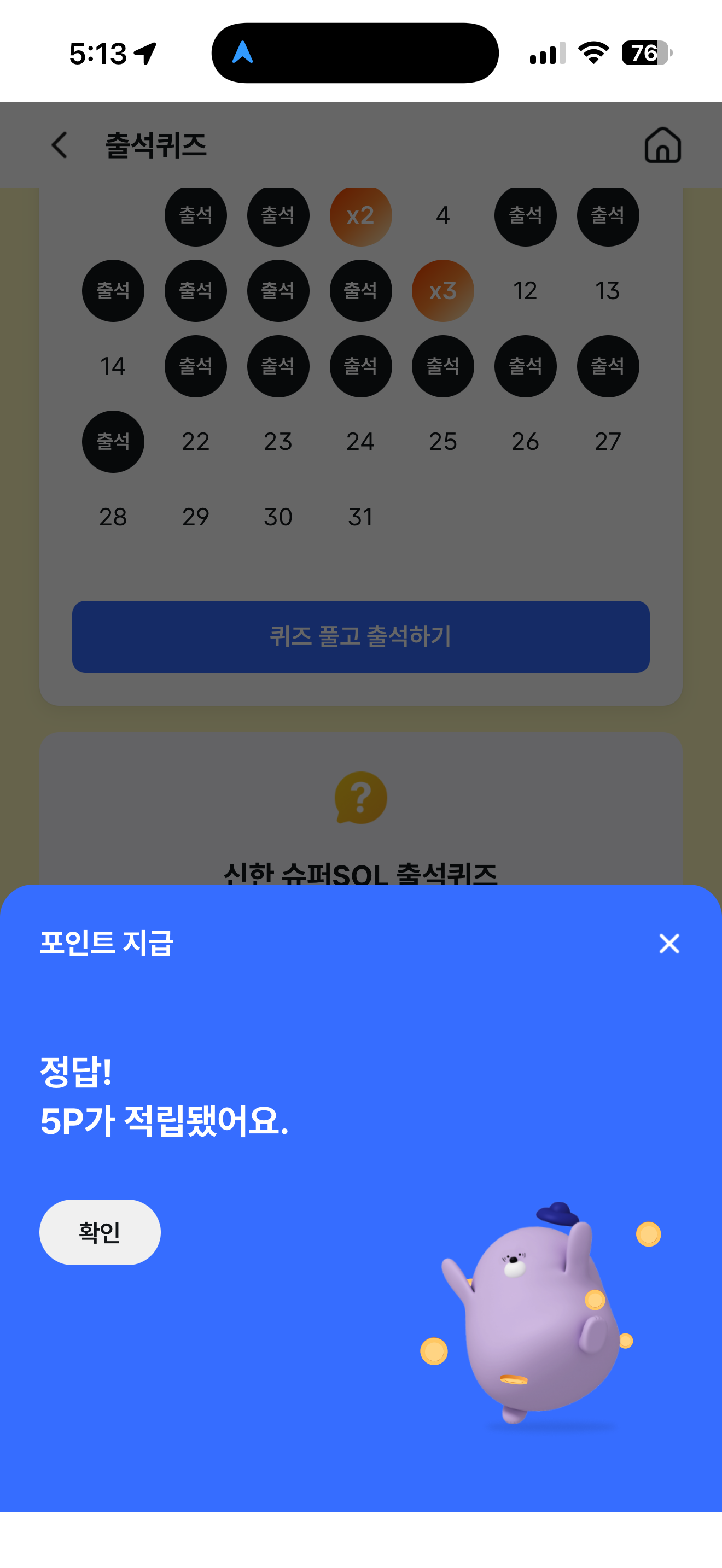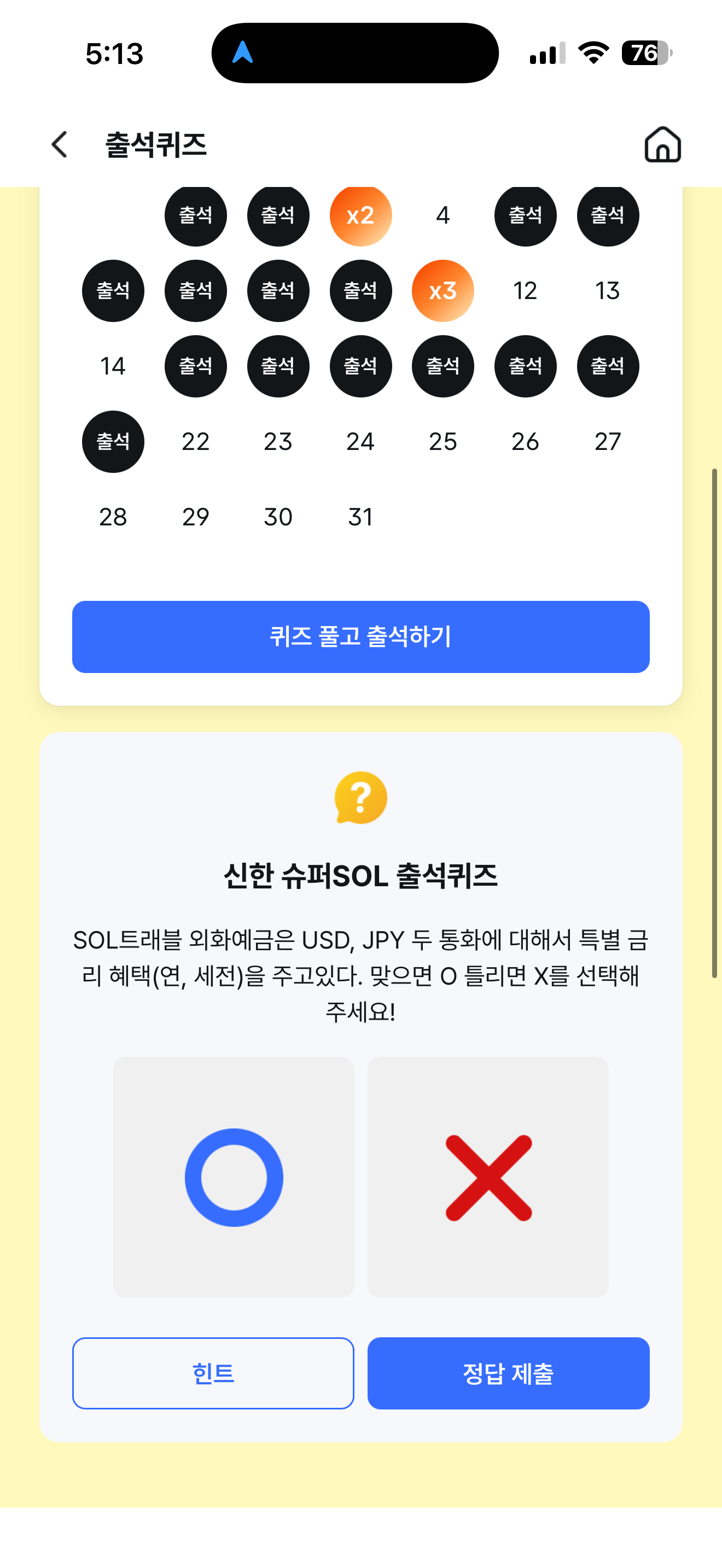 신한 슈퍼SOL 출석퀴즈 정답은 X 입니다