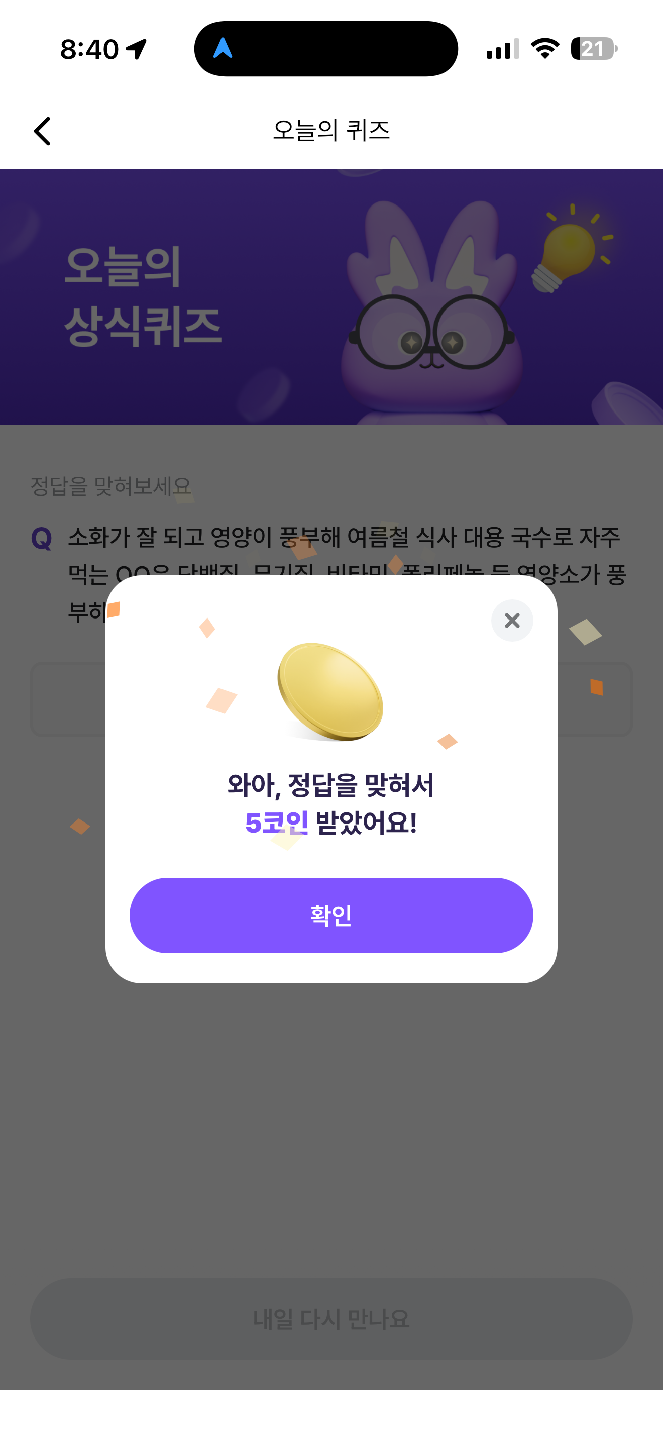 비트버니 오늘의 퀴즈 초성 힌트는 ㅁㅁ 입니다