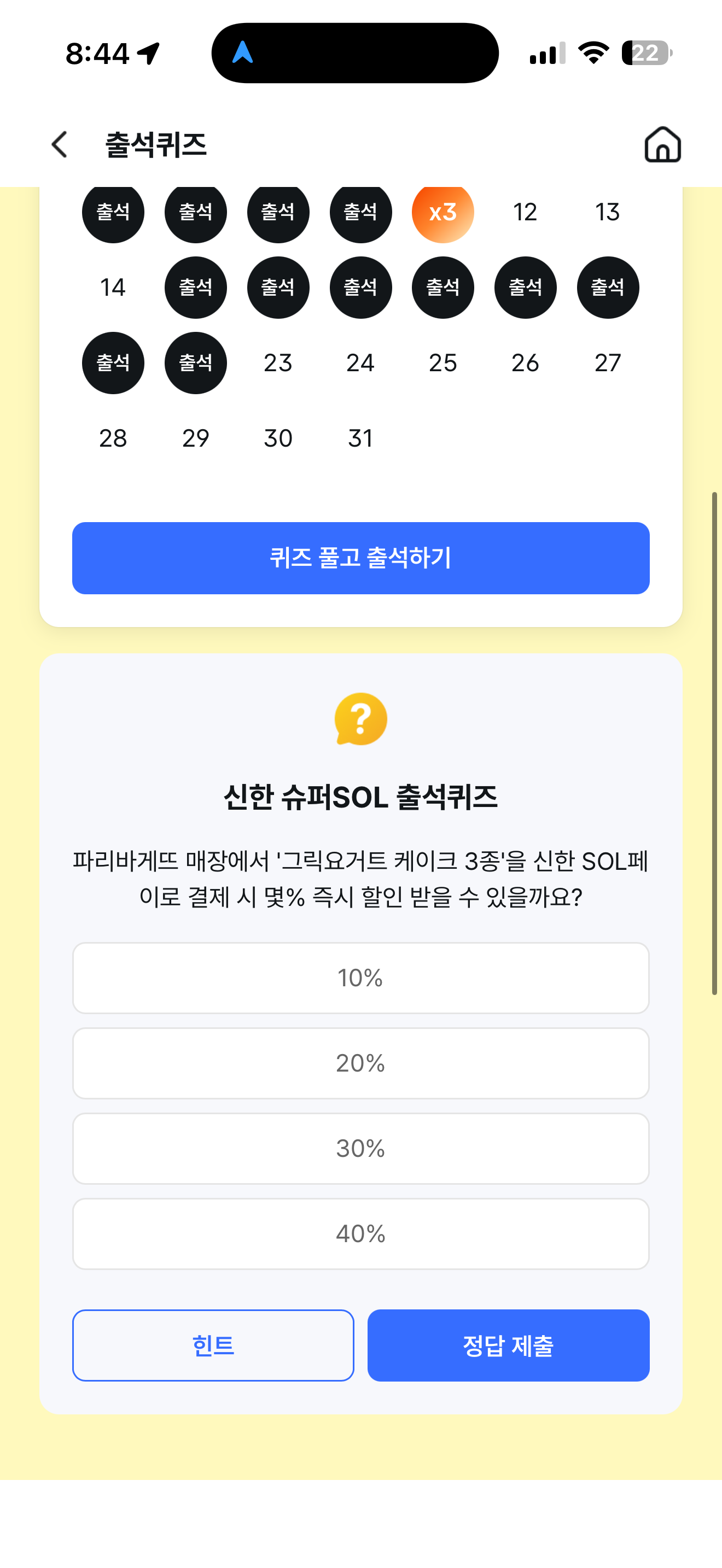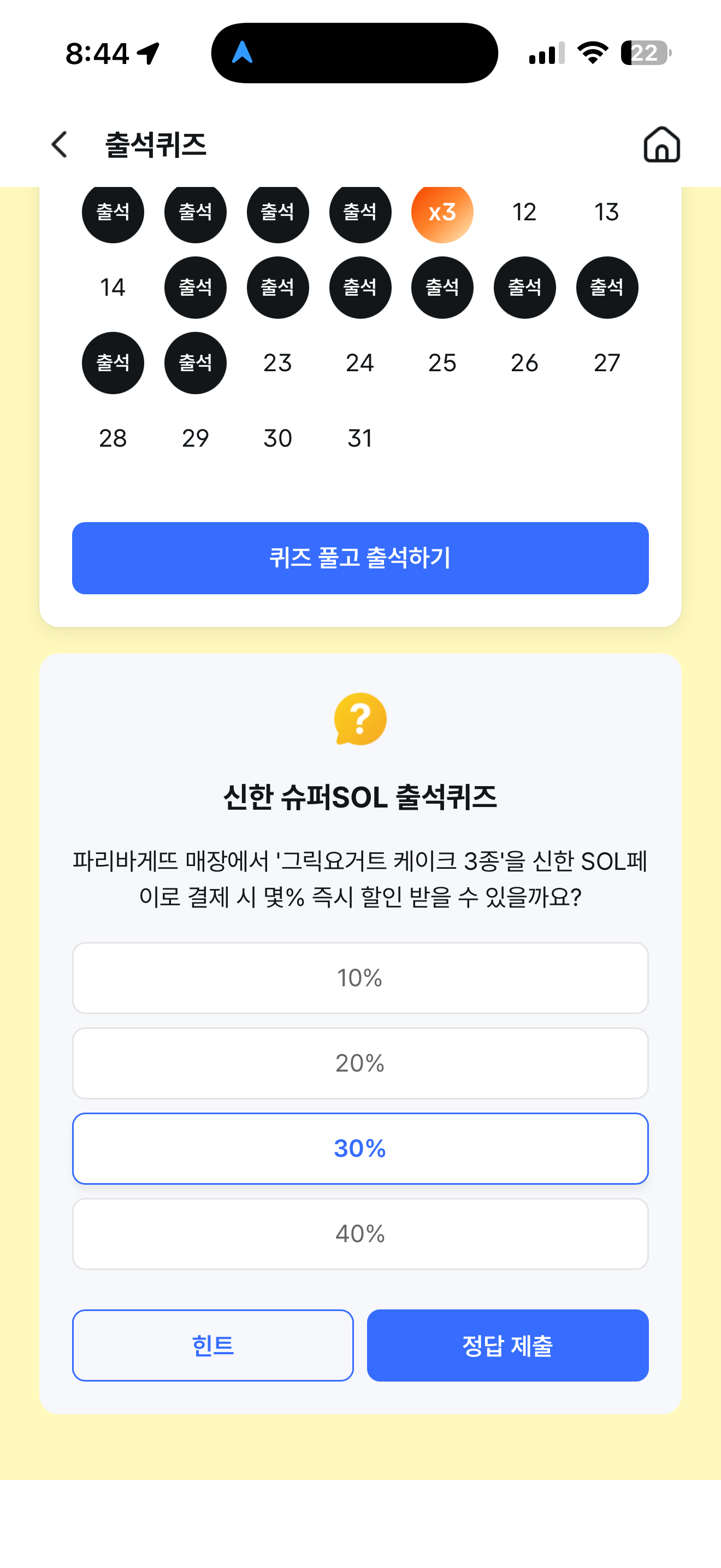 신한 슈퍼SOL 출석퀴즈 정답은 30% 입니다