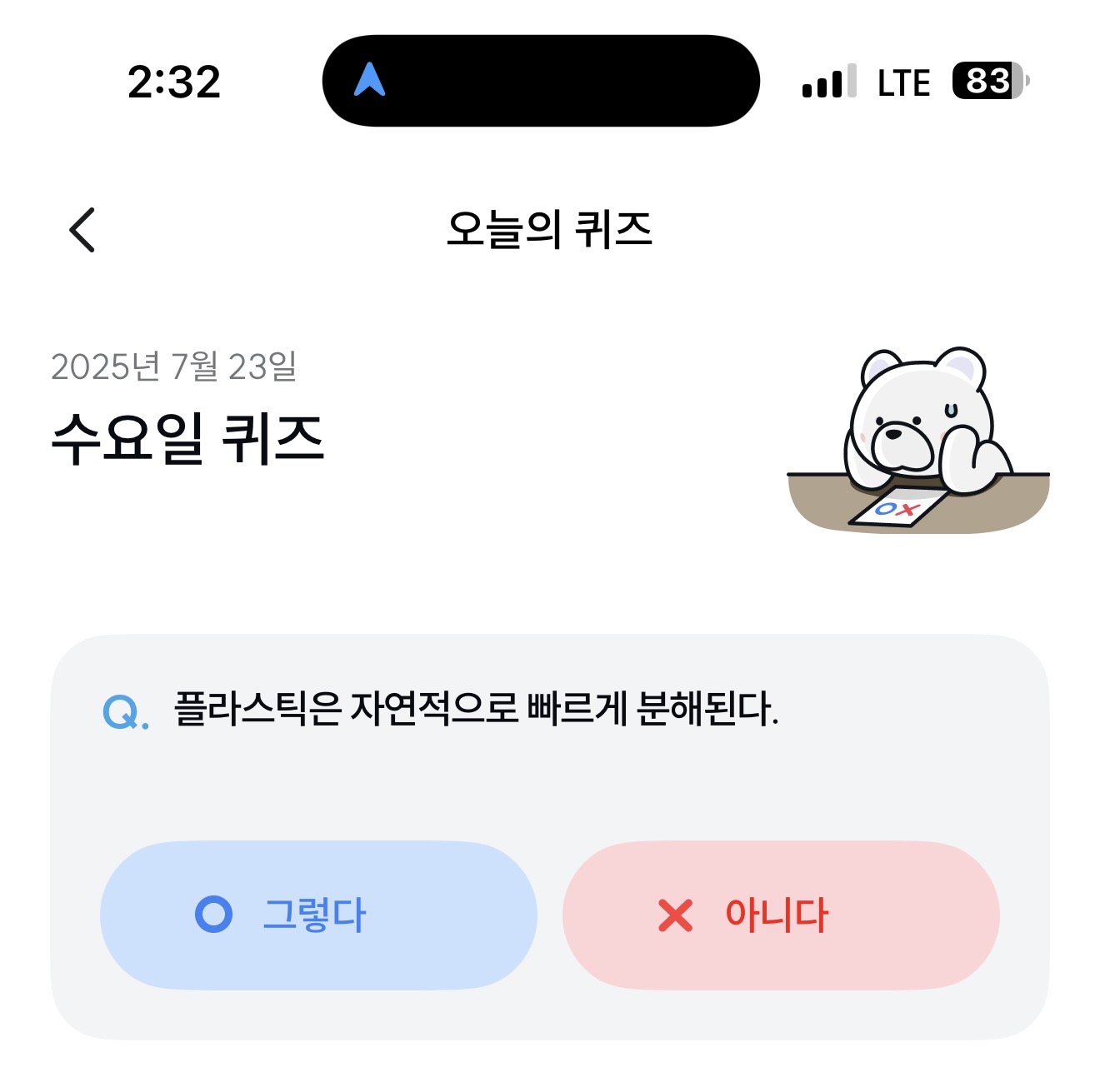 기후행동 기회소득 오늘의 퀴즈 7월 23일 정답(플라스틱은 자연적으로 빠르게 분해된다)