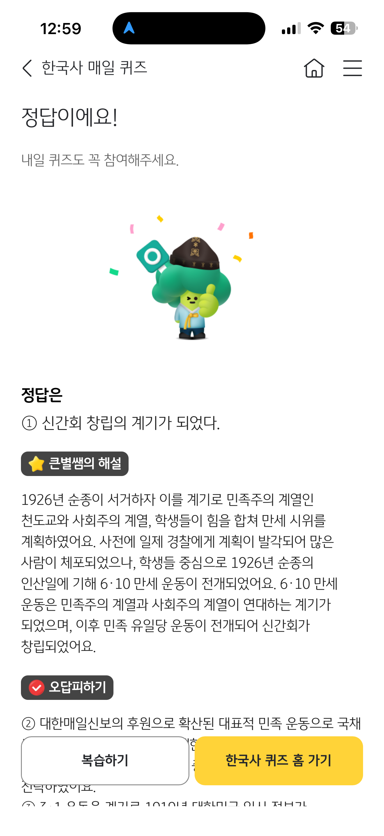 KB스타뱅킹 한국사 매일 퀴즈 정답은 신간회 창립의 계기가 되었다 입니다