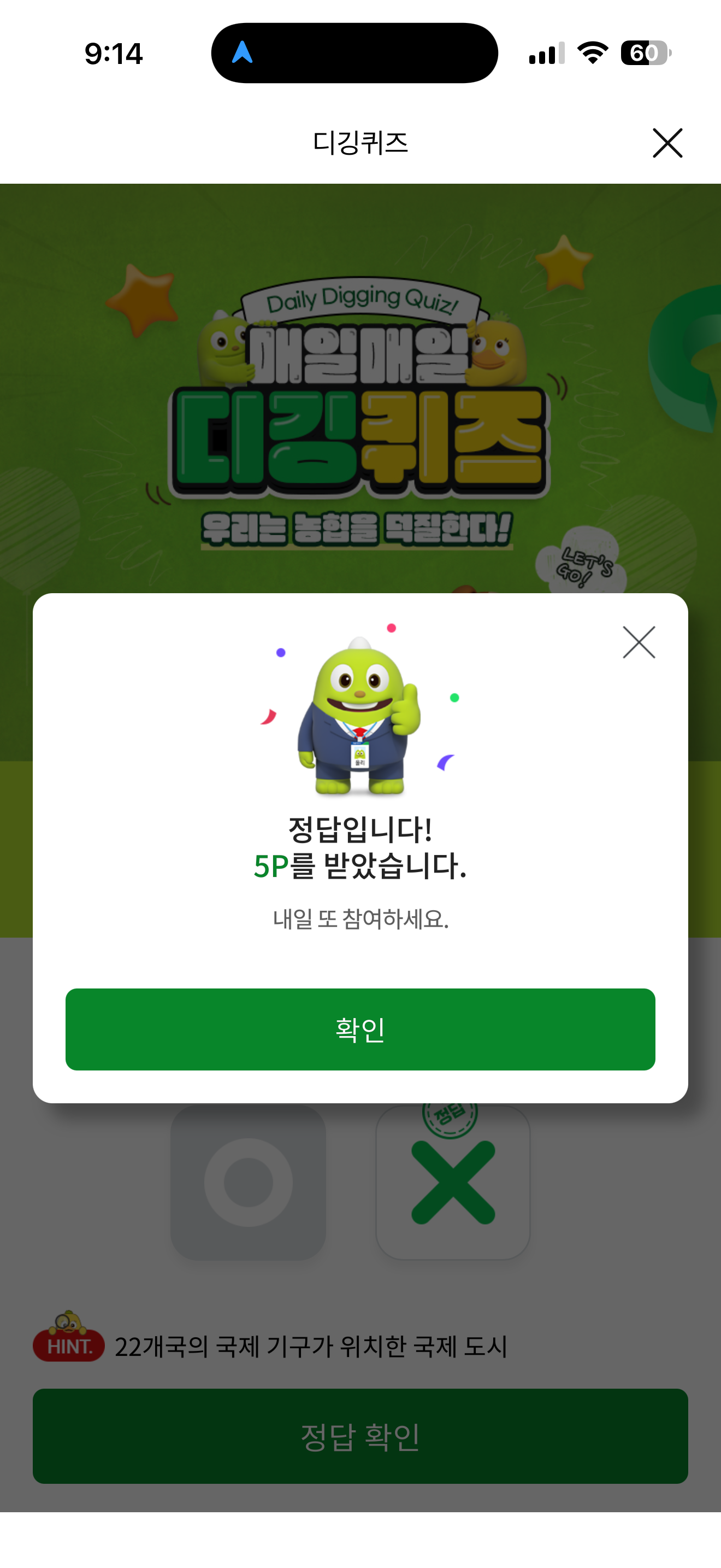 NH올원뱅크 디깅 퀴즈 정답은 X 입니다