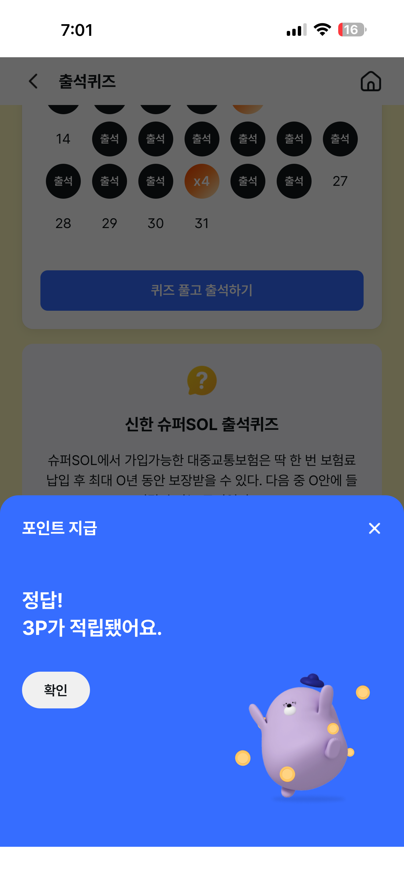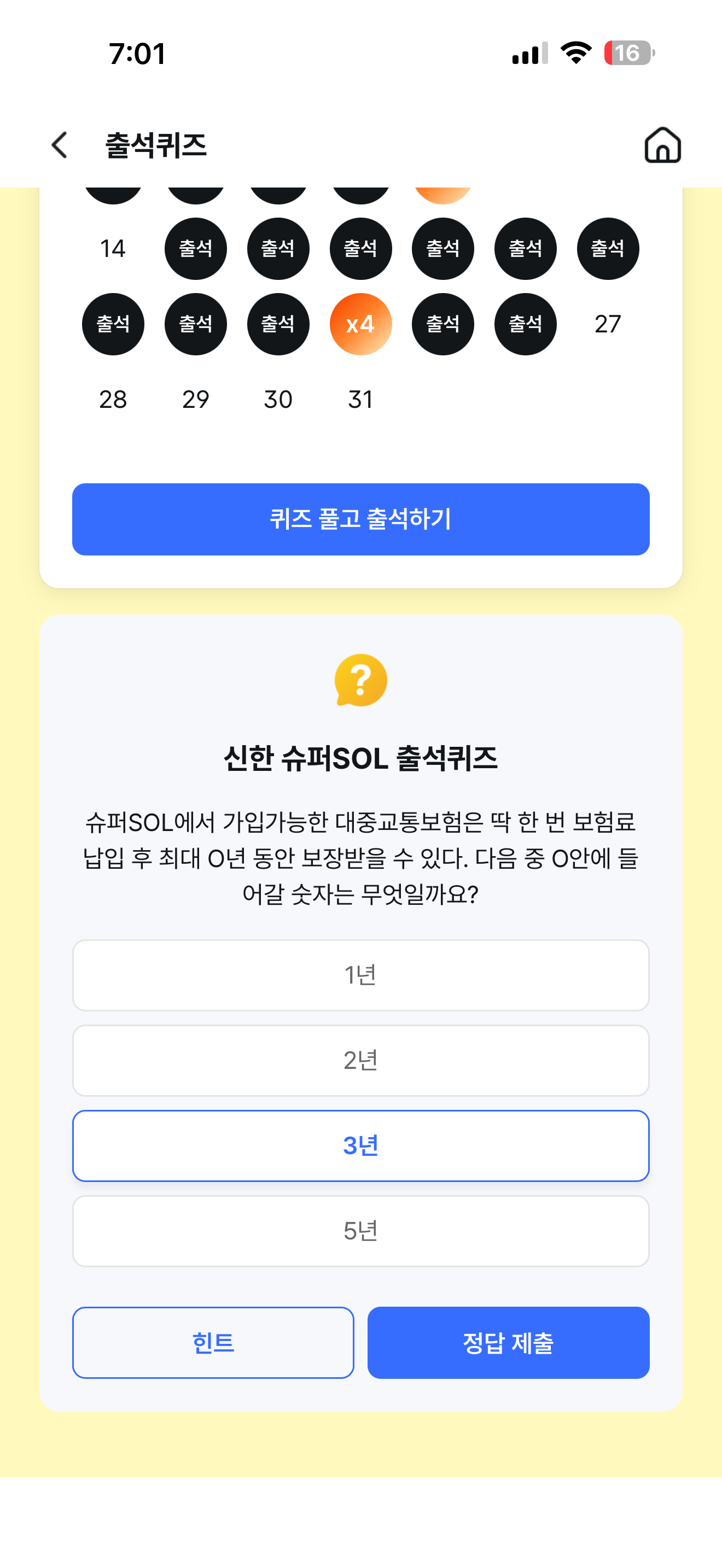 신한 슈퍼SOL 출석퀴즈 정답은 3년 입니다
