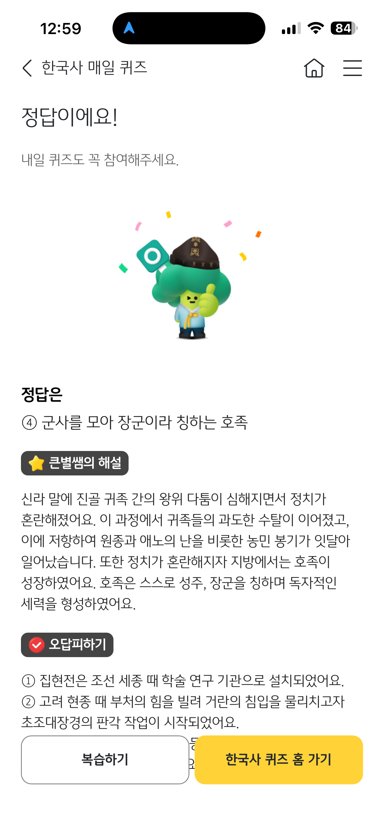 KB스타뱅킹 한국사 매일 퀴즈 정답은 군사를 모아 장군이라 칭하는 호족 입니다