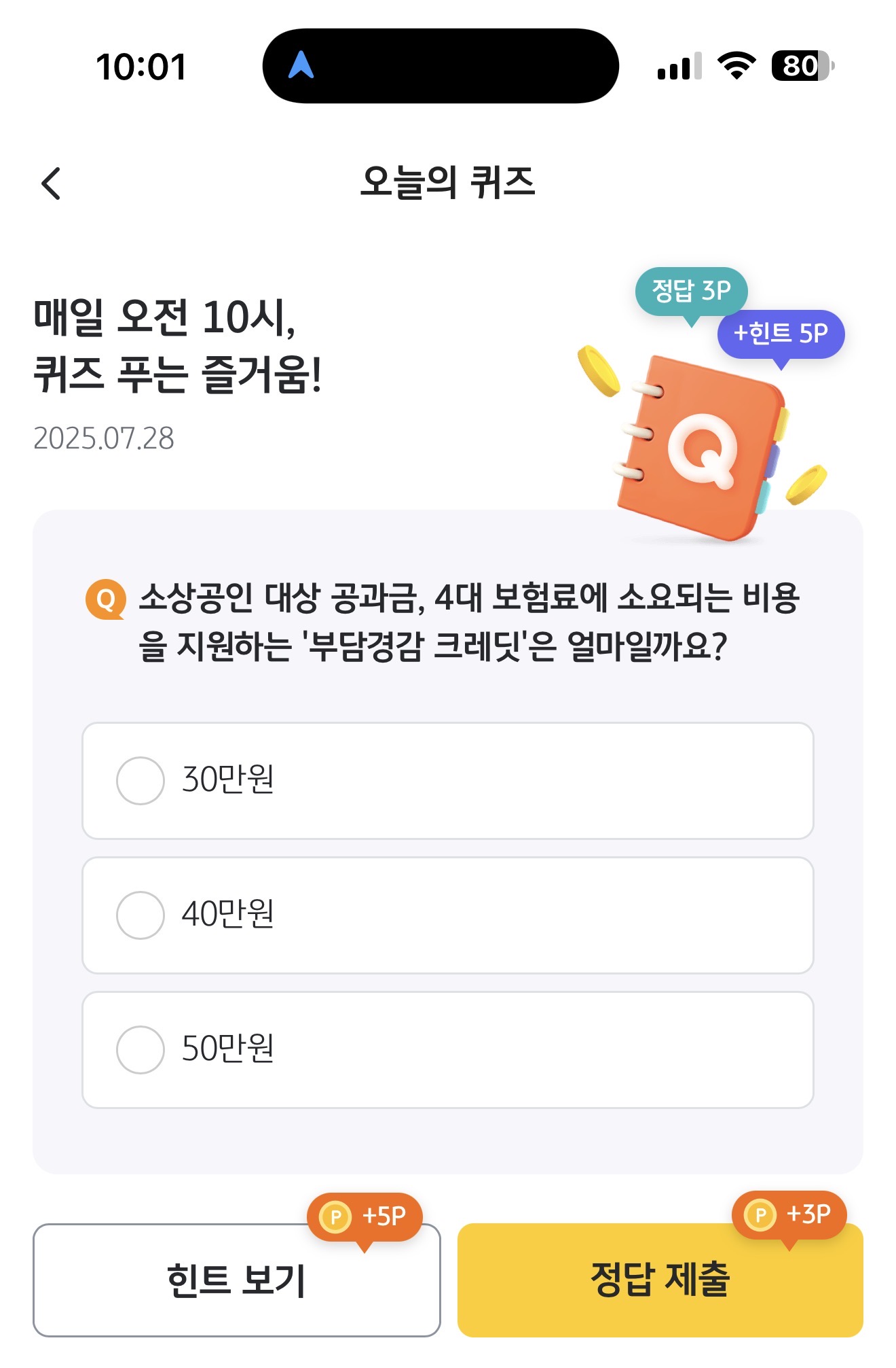 소상공인 대상 공과금, 4대 보험료에 소요되는 비용을 지원하는 '부당경감 크레딧'은 얼마일까요? 보기는 1. 30만원 2. 40만원 3. 50만원 입니다. 소상공인 대상으로 비용부담을 줄여주는 혜택이 제공되고 있습니다. 잘 참고해서 활용해 보세요