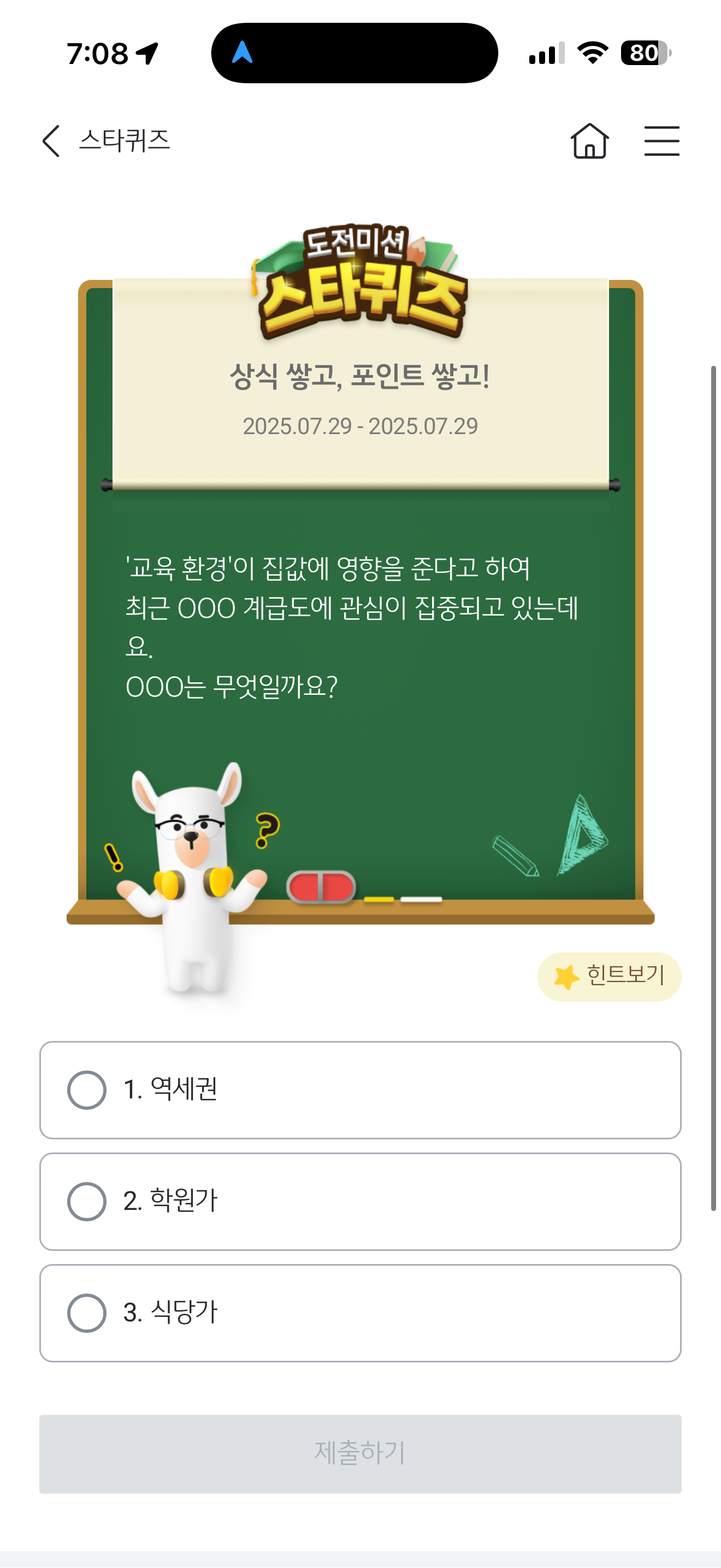KB스타뱅킹 스타퀴즈 정답은 학원가 입니다