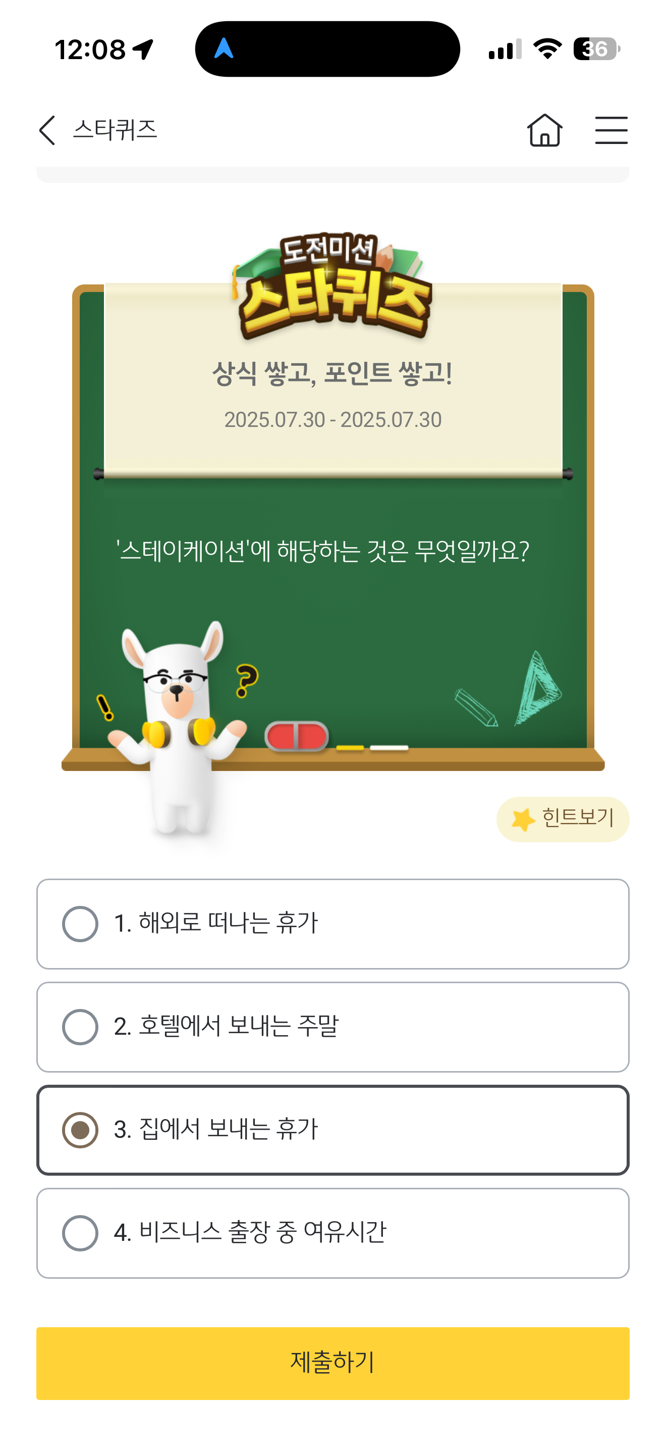 KB스타뱅킹 스타퀴즈 정답은 집에서 보내는 휴가 입니다