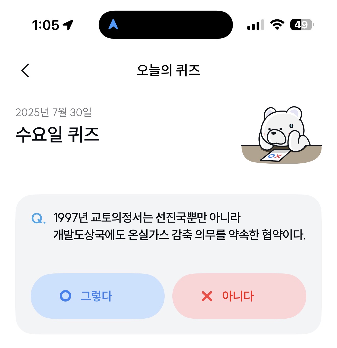 기후행동 기회소득 오늘의 퀴즈 정답은 아니다 입니다