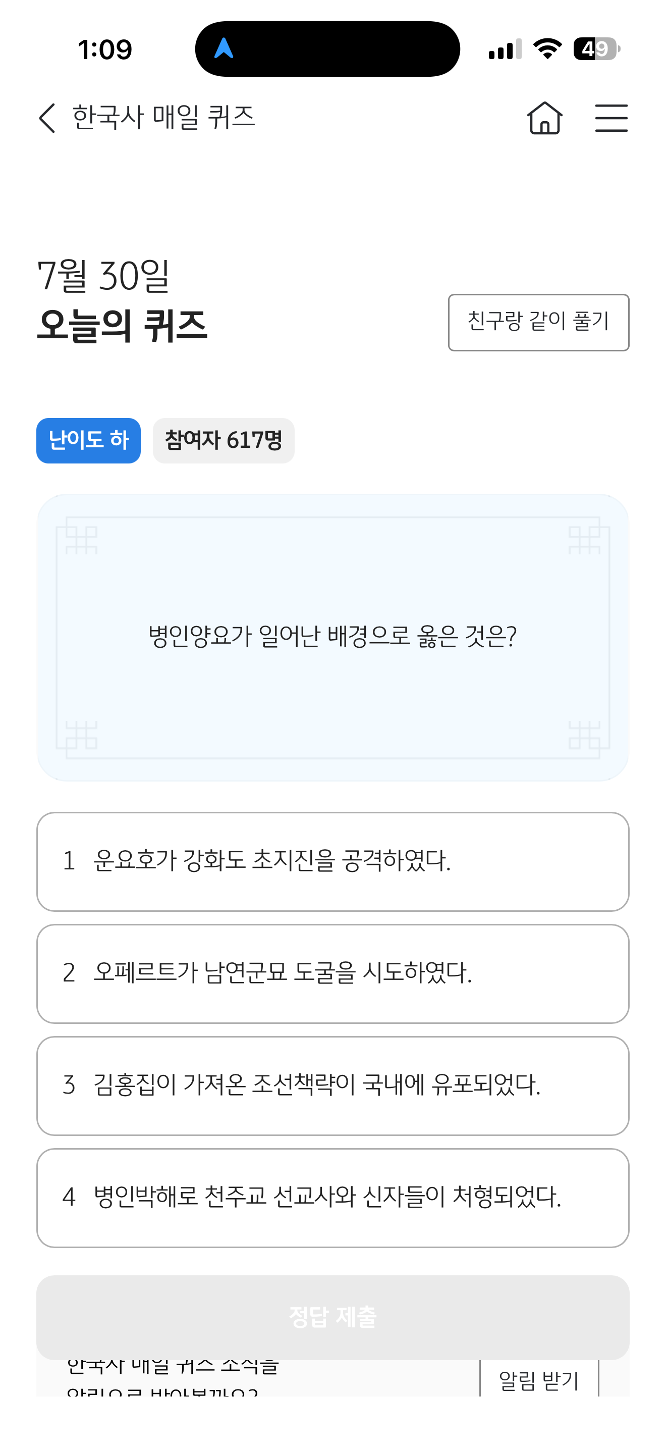 KB스타뱅킹 한국사 매일 퀴즈 7월 30일 문제입니다