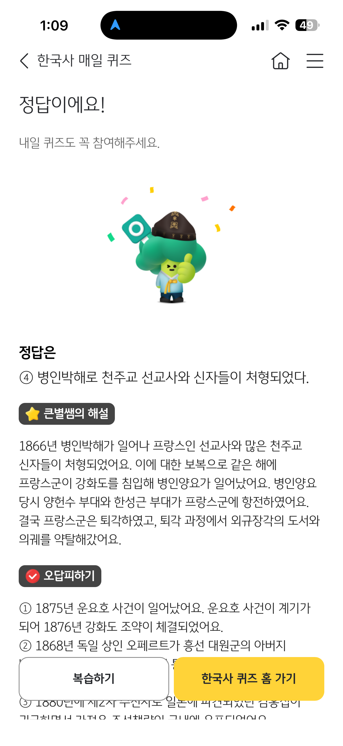 KB스타뱅킹 한국사 매일 퀴즈 정답은 병인박해로 천주교 선교사와 신자들이 처형되었다 입니다