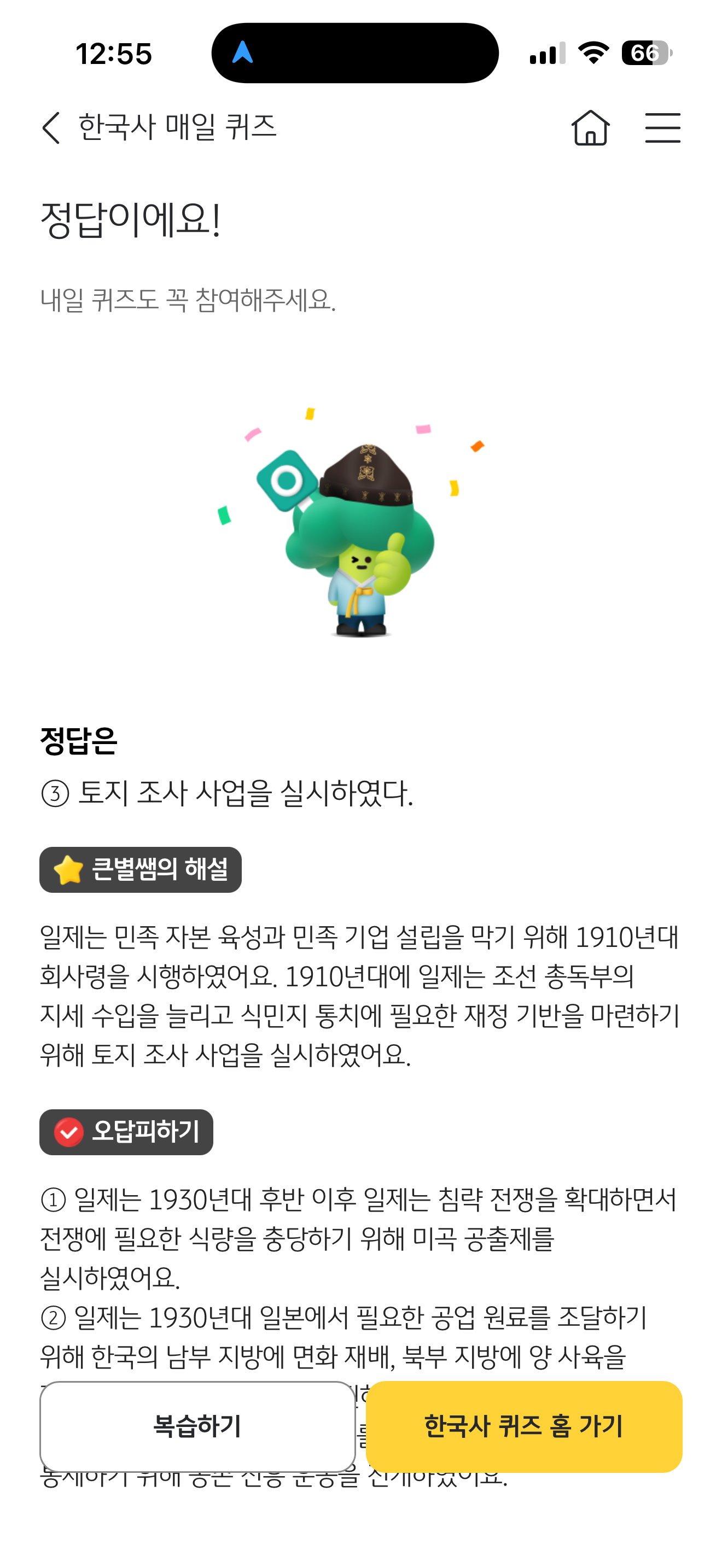KB스타뱅킹 한국사 매일 퀴즈 정답은 토지 조사 사업을 실시하였다 입니다