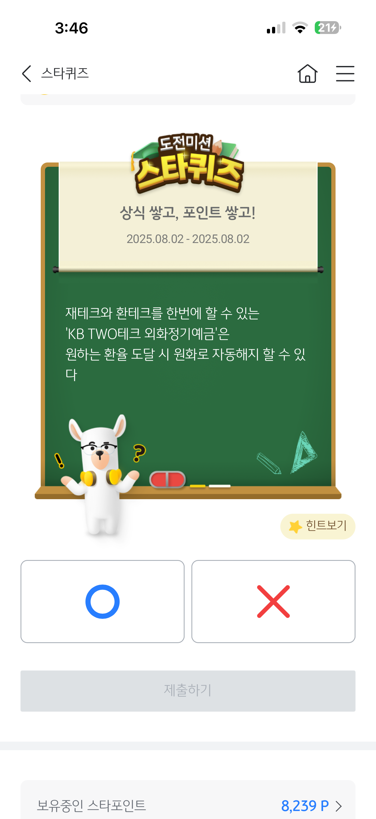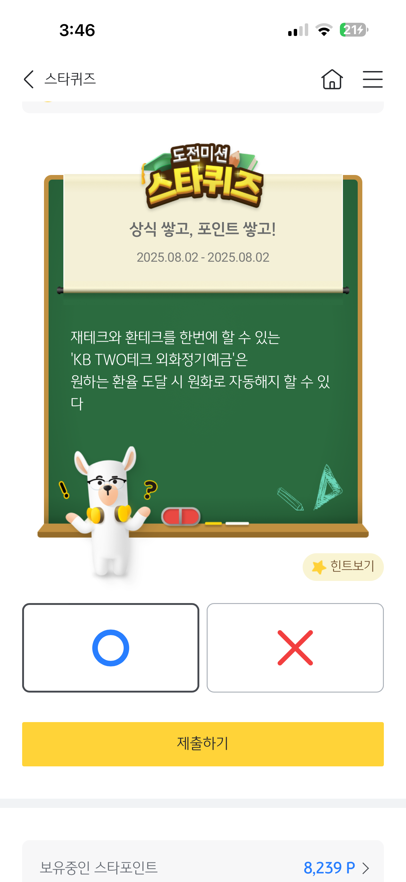 KB스타뱅킹 스타퀴즈 정답은 O 입니다