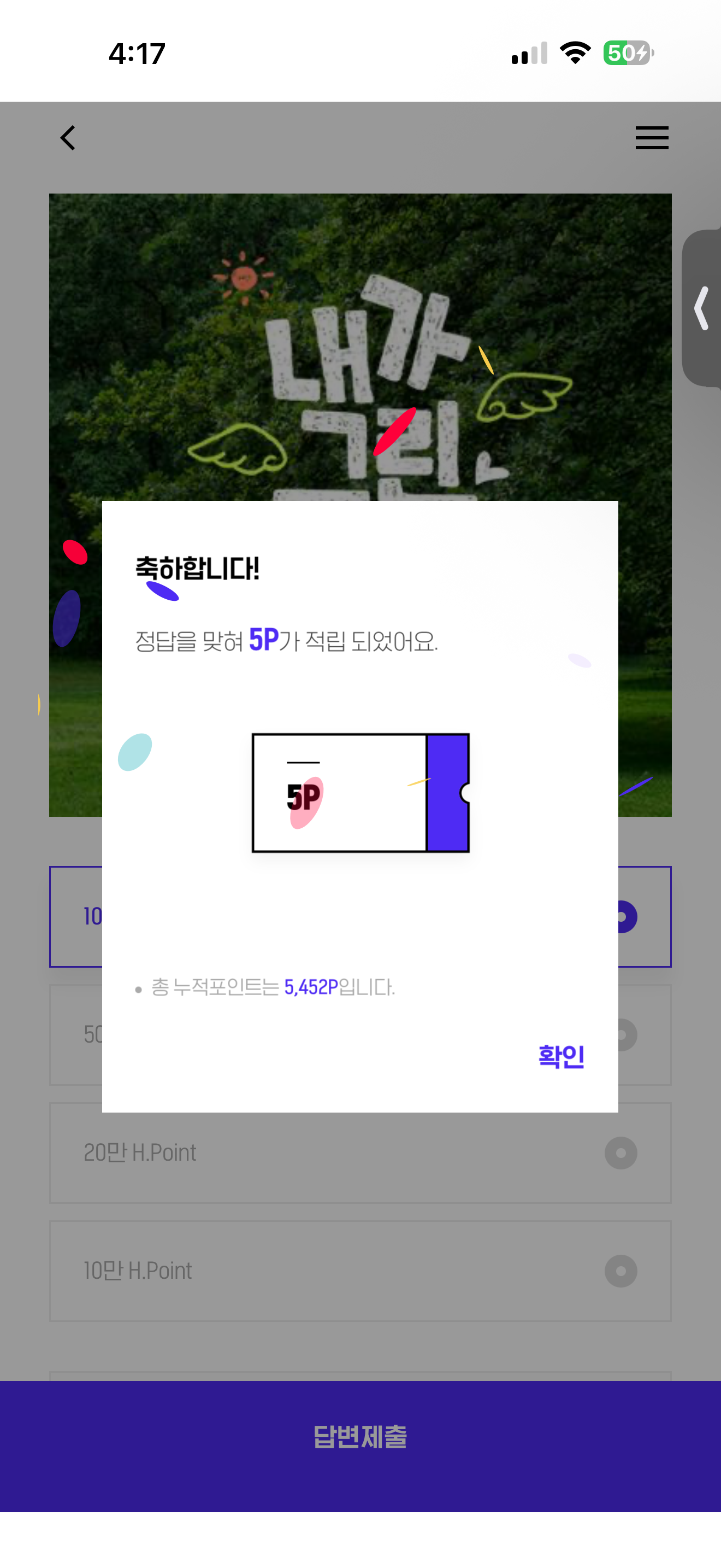 H포인트 퀴즈 정답은 100만 H.Point 입니다