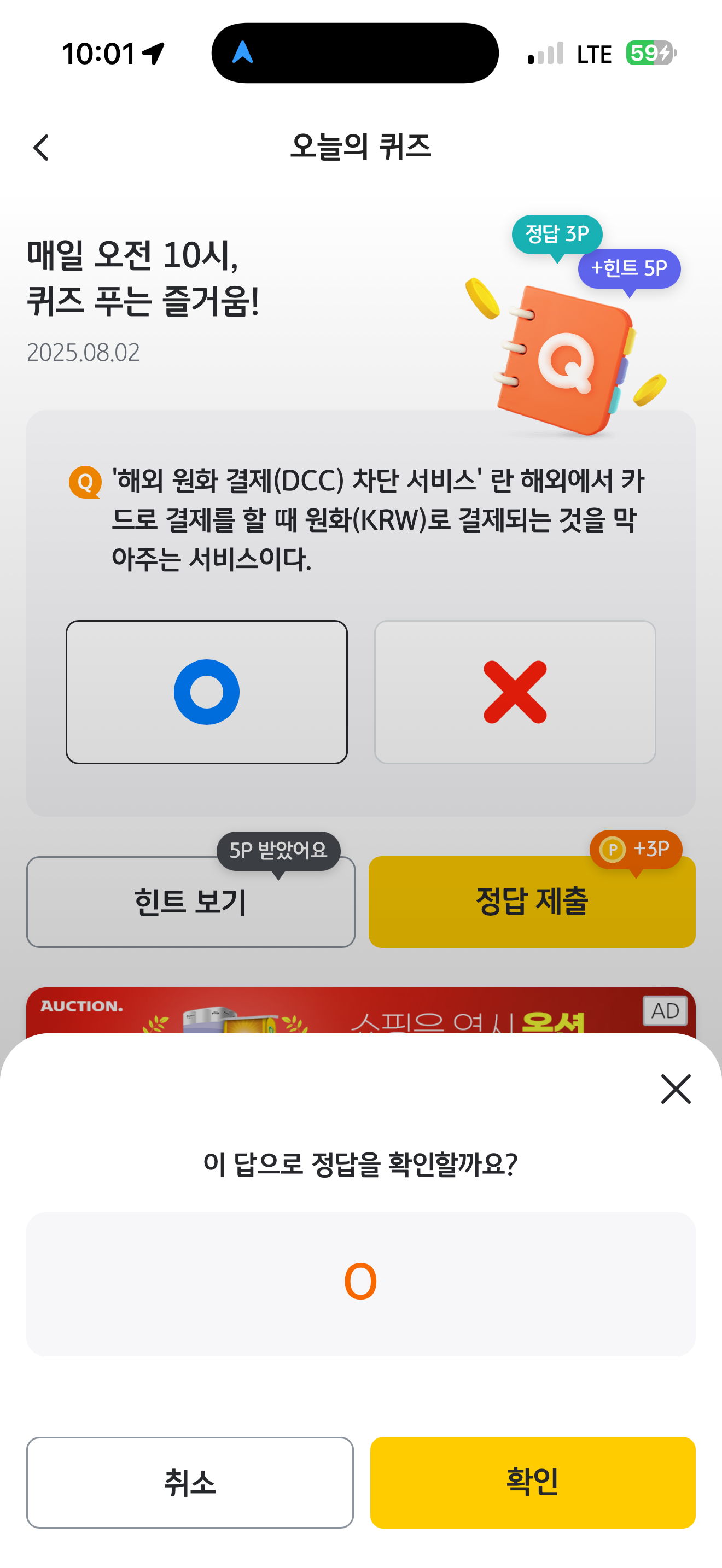KB Pay 오늘의 퀴즈 8월 2일 정답('해외 원화 결제(DCC) 차단 서비스' 란 해외에서 카드로 결제를 할 때 원화(KRW)로 결제되는 것을 막아주는 서비스이다)