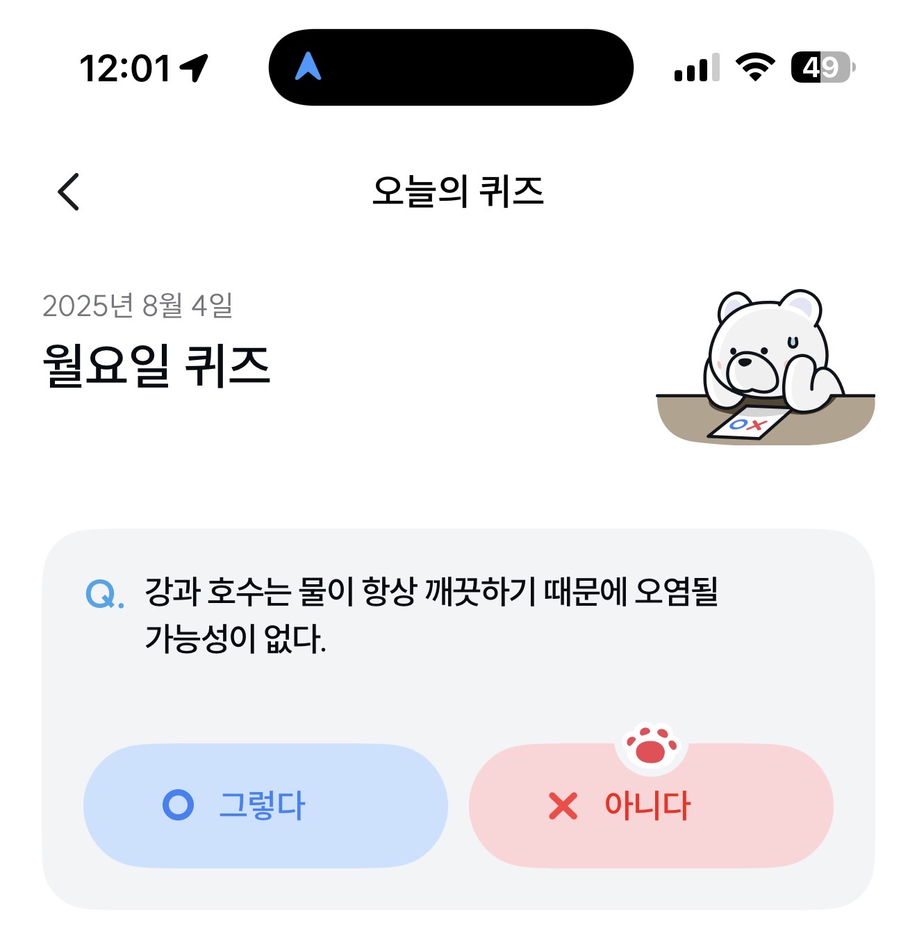 기후행동 기회소득 오늘의 퀴즈 정답은 아니다 입니다