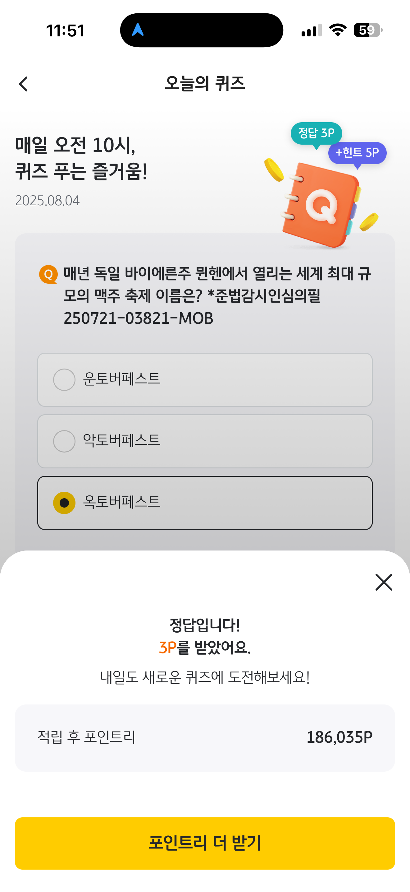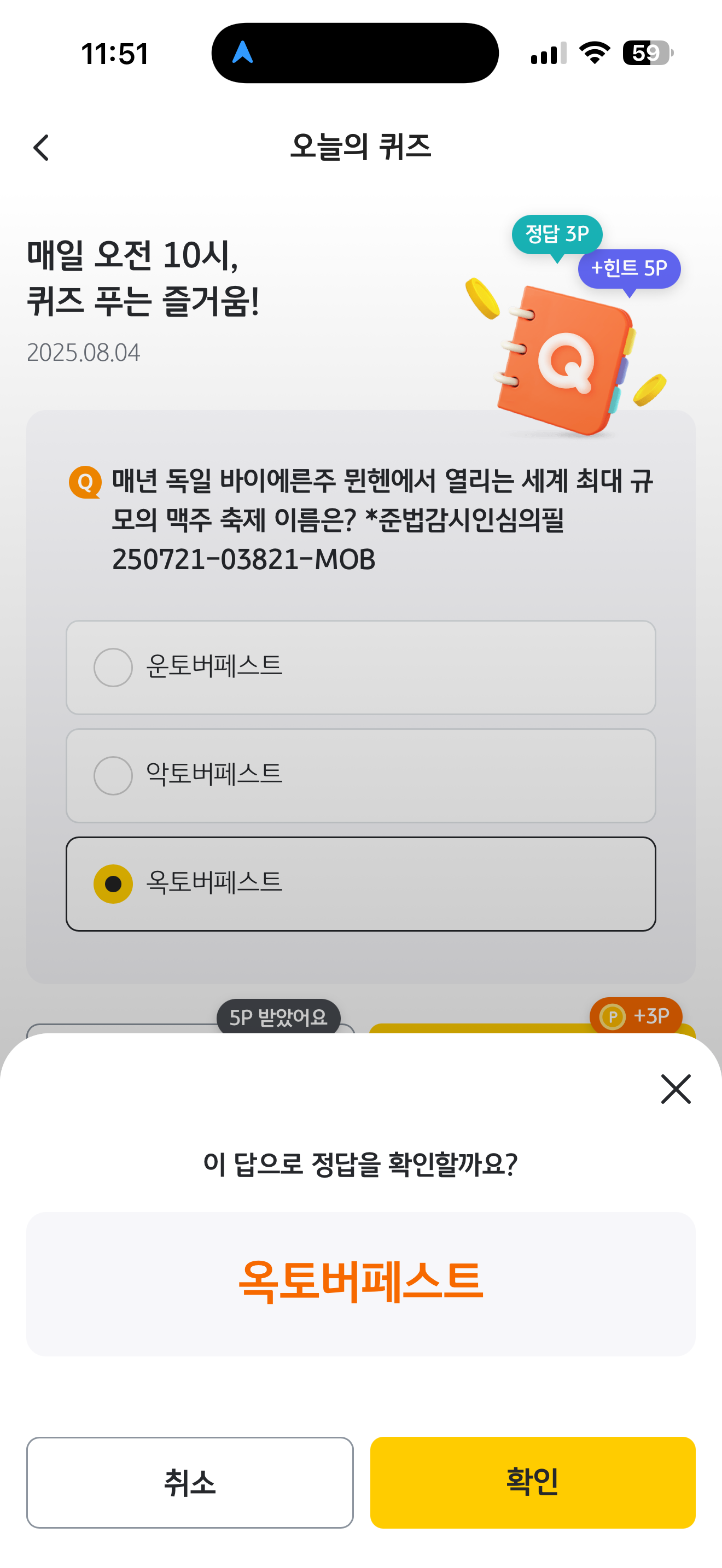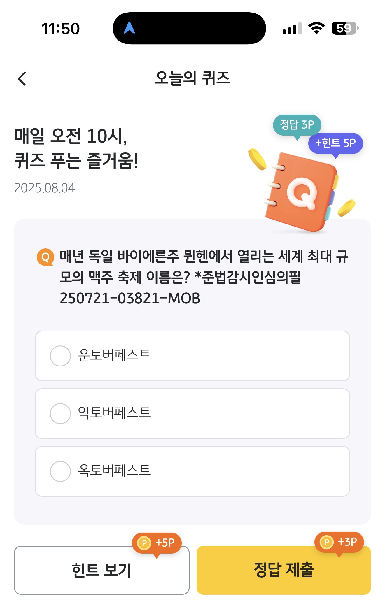 KB pay 오늘의 퀴즈 정답은 옥토버페스트 입니다