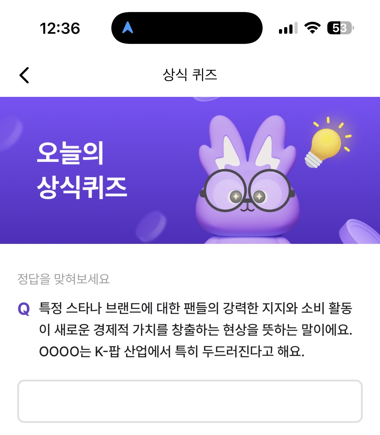 특정 스타나 브랜드에 대한 팬들의 강력한 지지와 소비 활동이 새로운 경제적 가치를 창출하는 현상을 뜻하는 말이에요. OOOO는 K-팝 산업에서 특히 두드러진다고 해요. 주관식 퀴즈인데요.