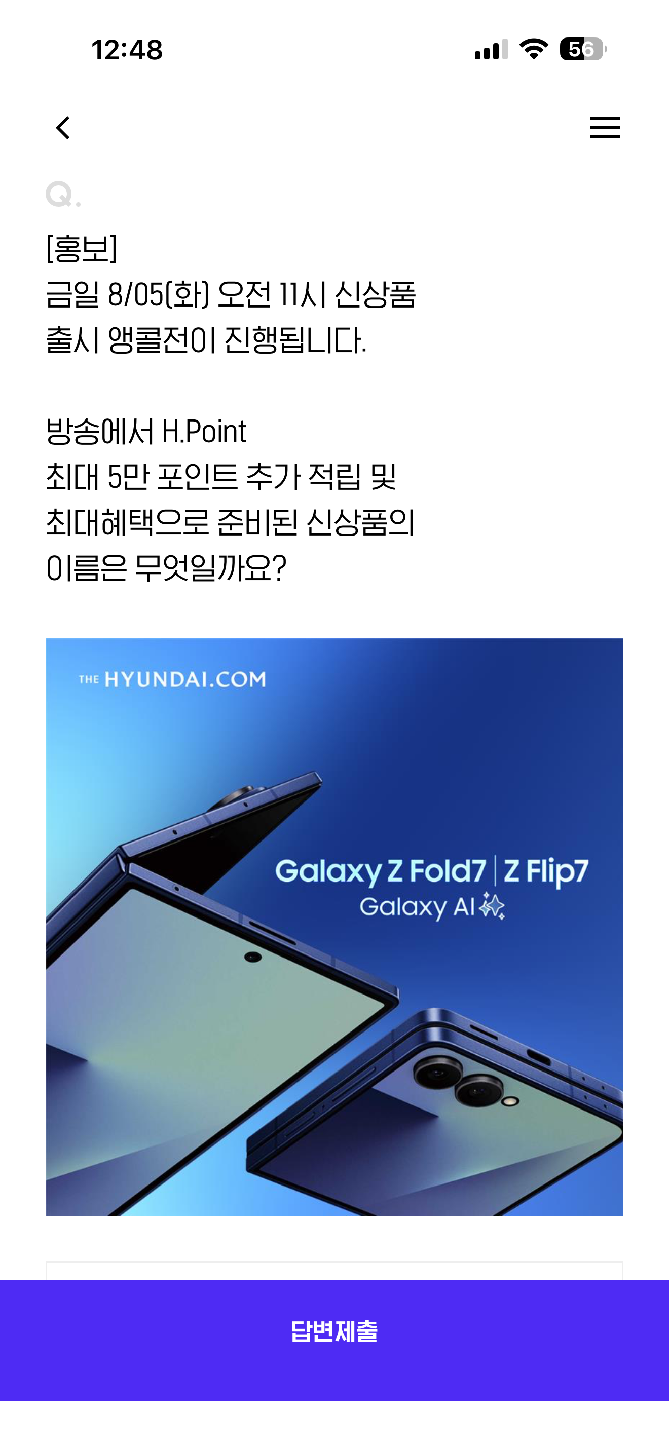 H포인트 퀴즈 정답은 갤럭시 Z폴드7,z플립7 입니다