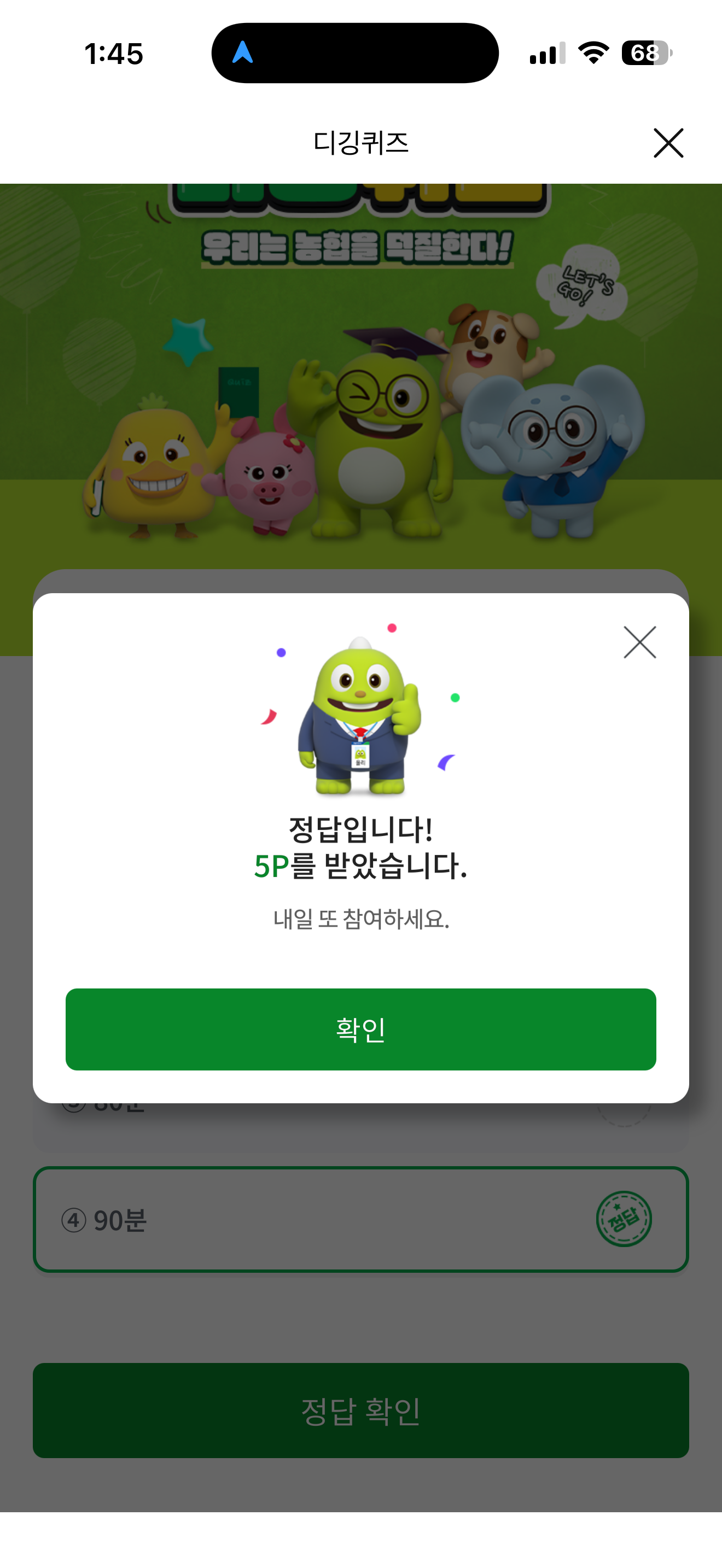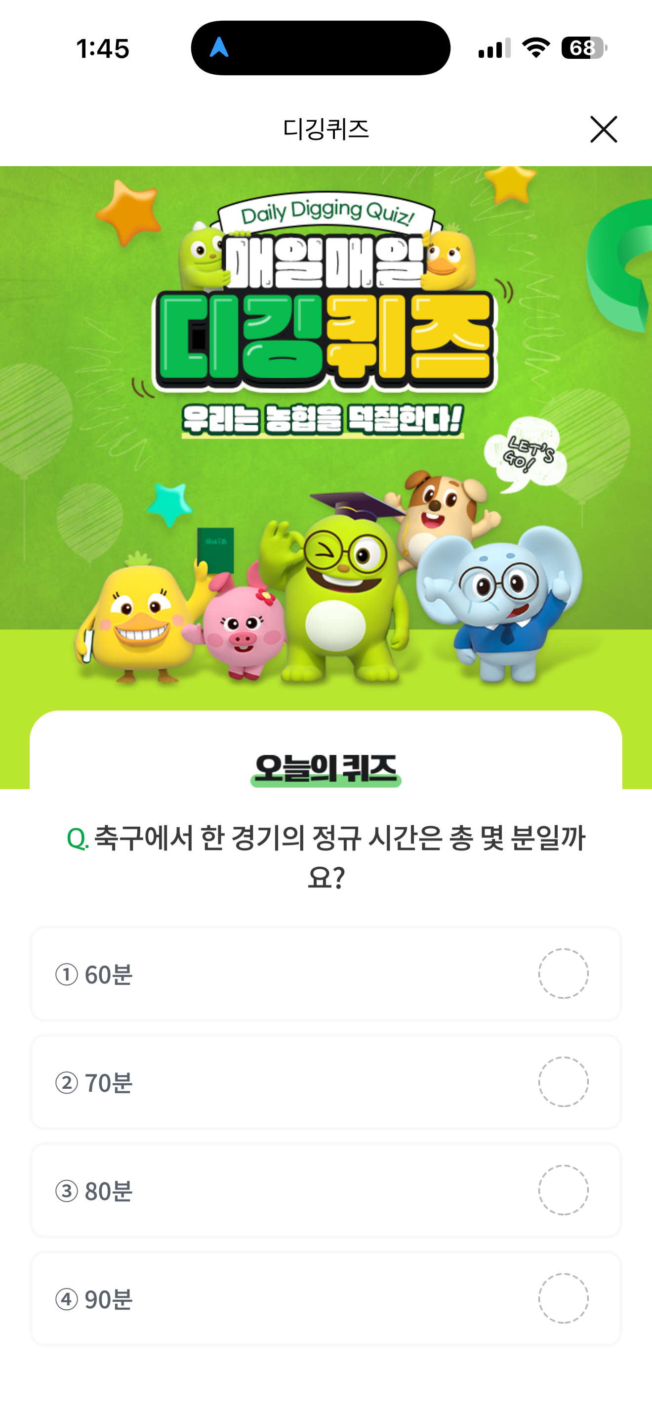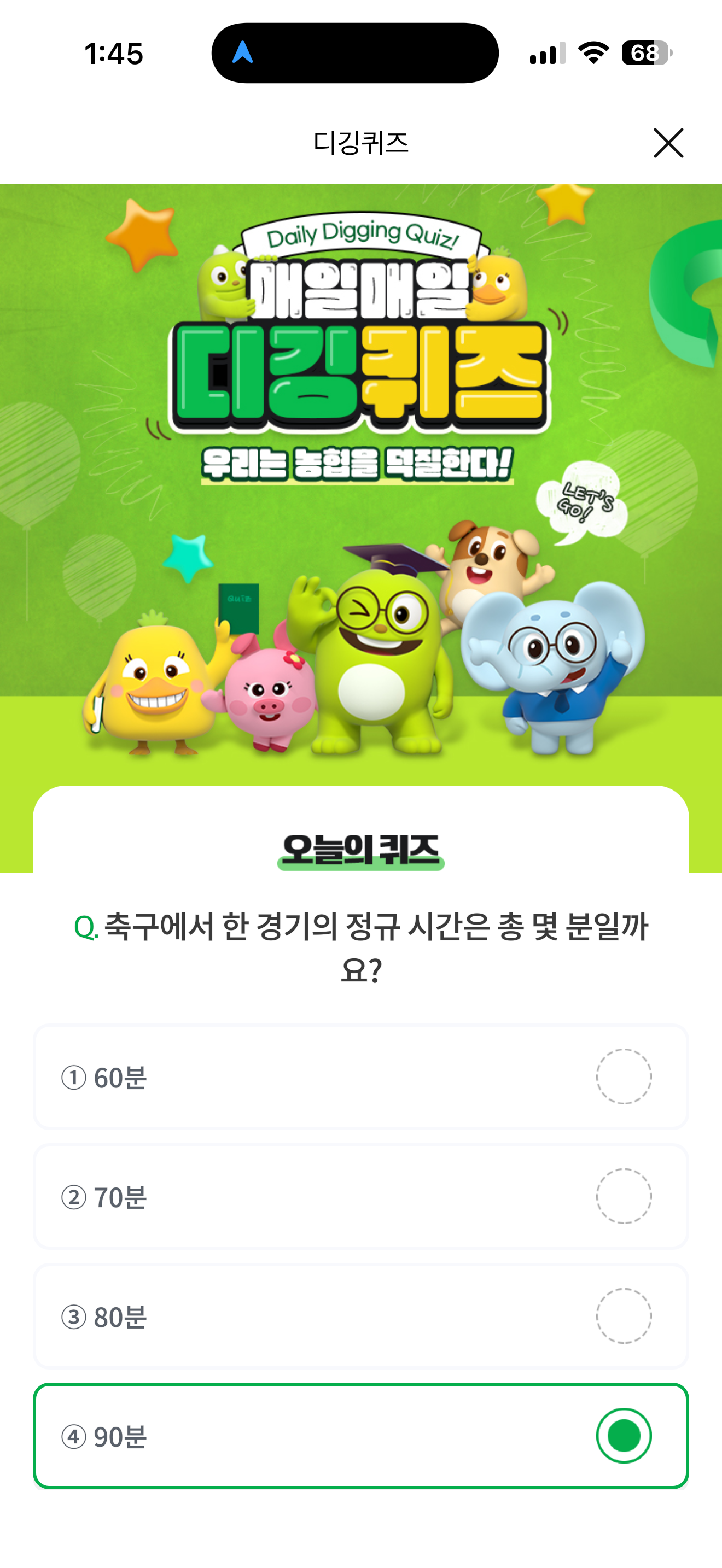 NH올원뱅크 디깅퀴즈 정답은 90분 입니다
