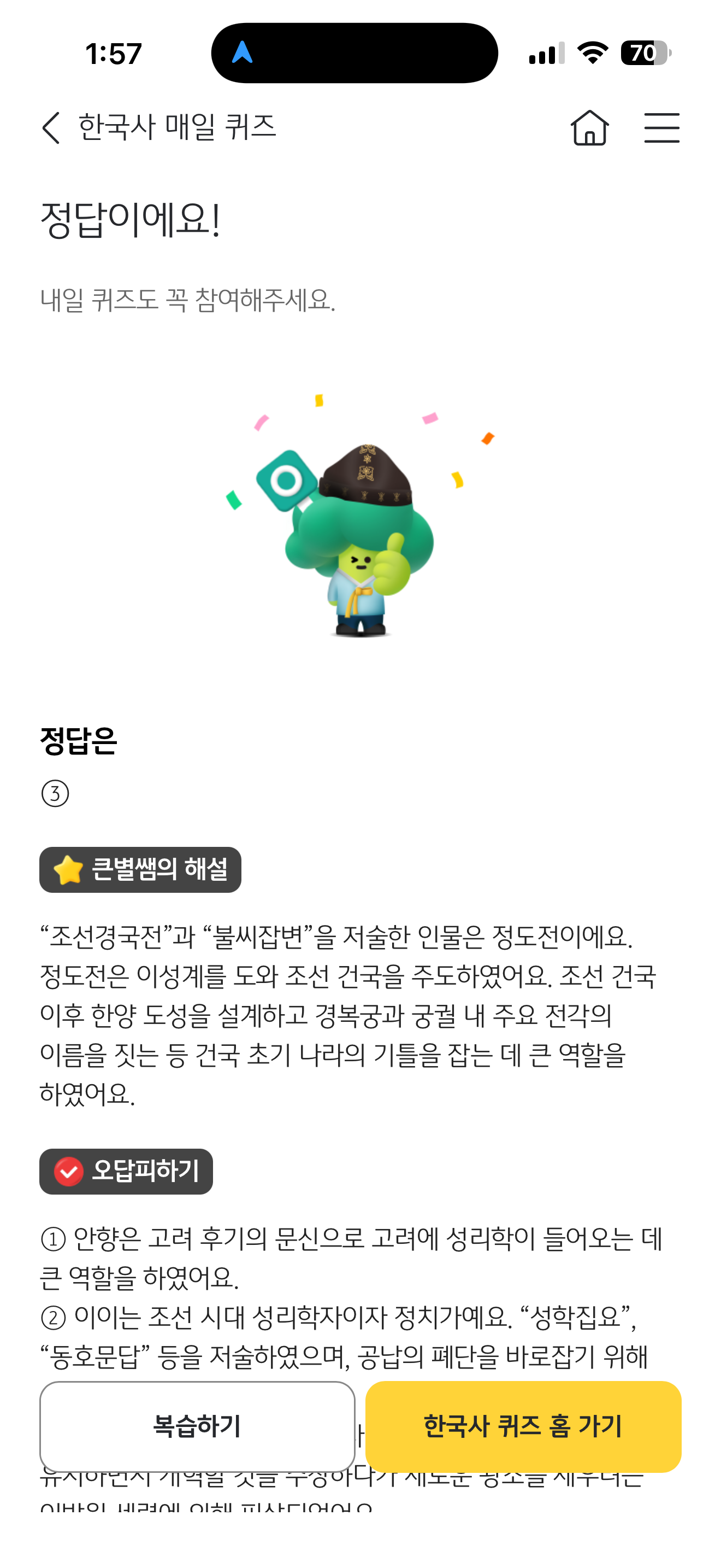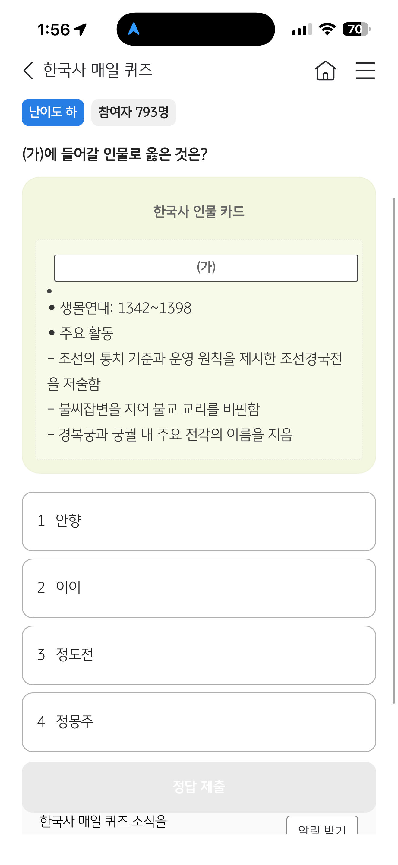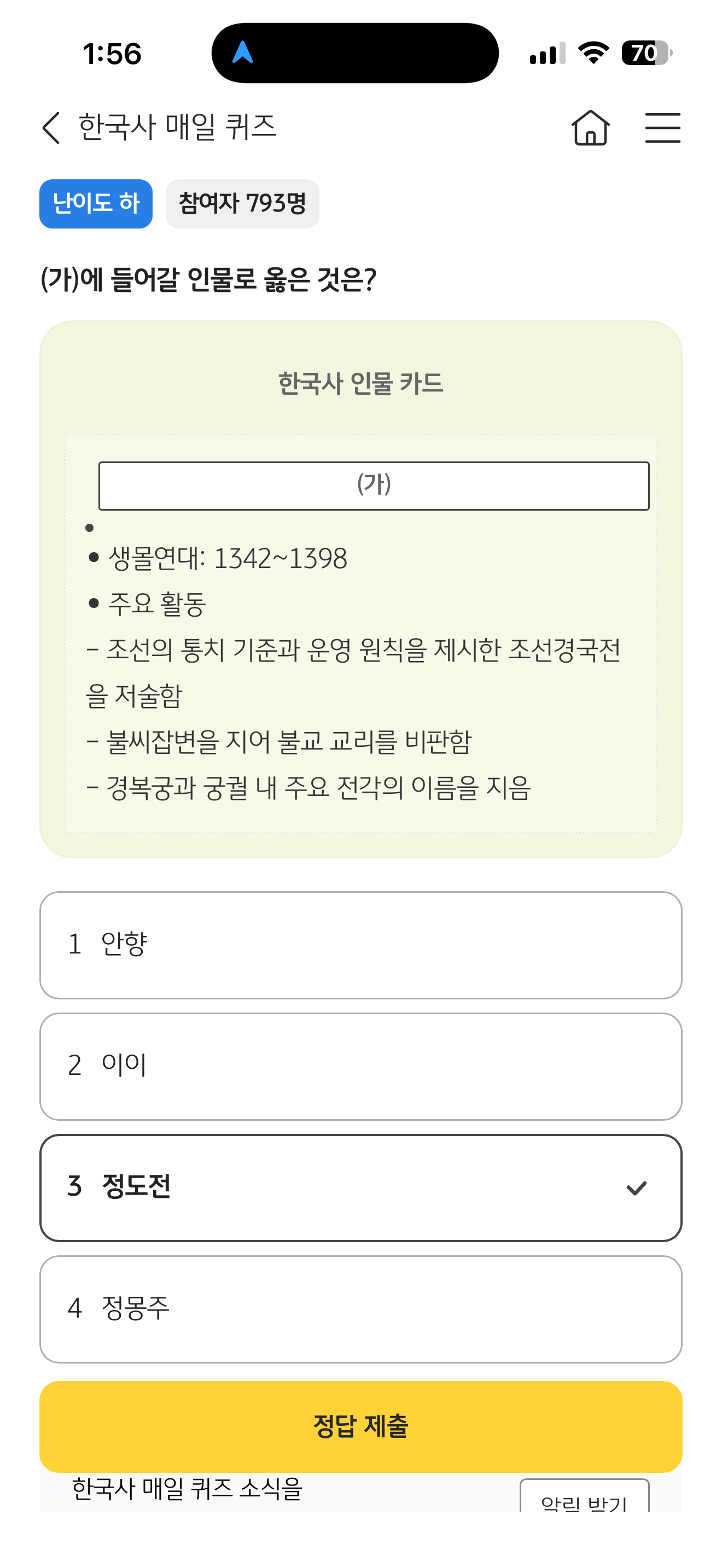 KB스타뱅킹 한국사 매일 퀴즈 정답은 정도전 입니다