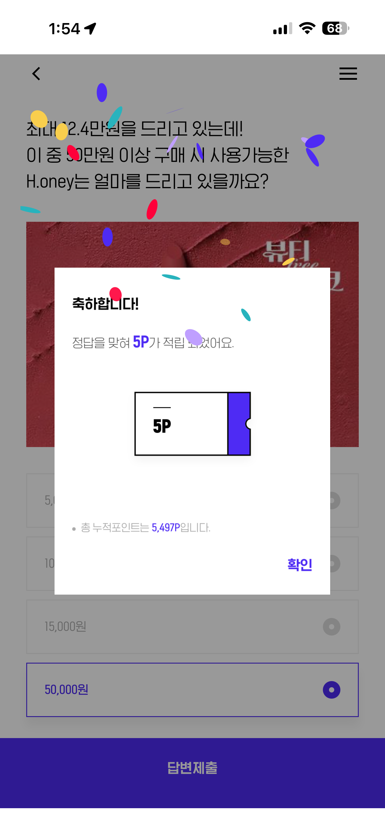 H포인트 퀴즈 정답은 50,000원 입니다