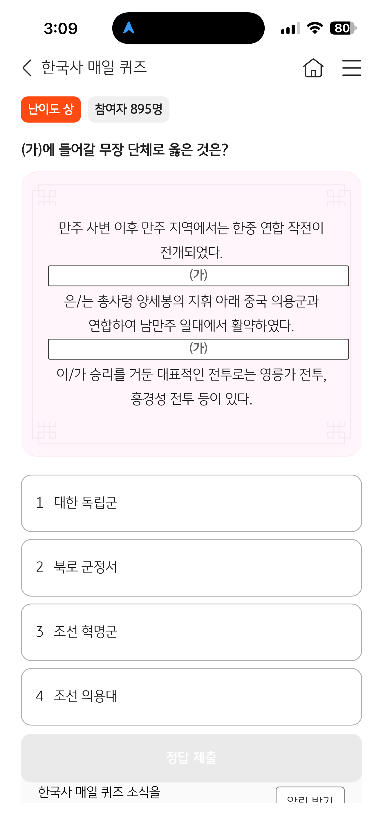 KB스타뱅킹 한국사 매일 퀴즈 정답은 조선 혁명군 입니다