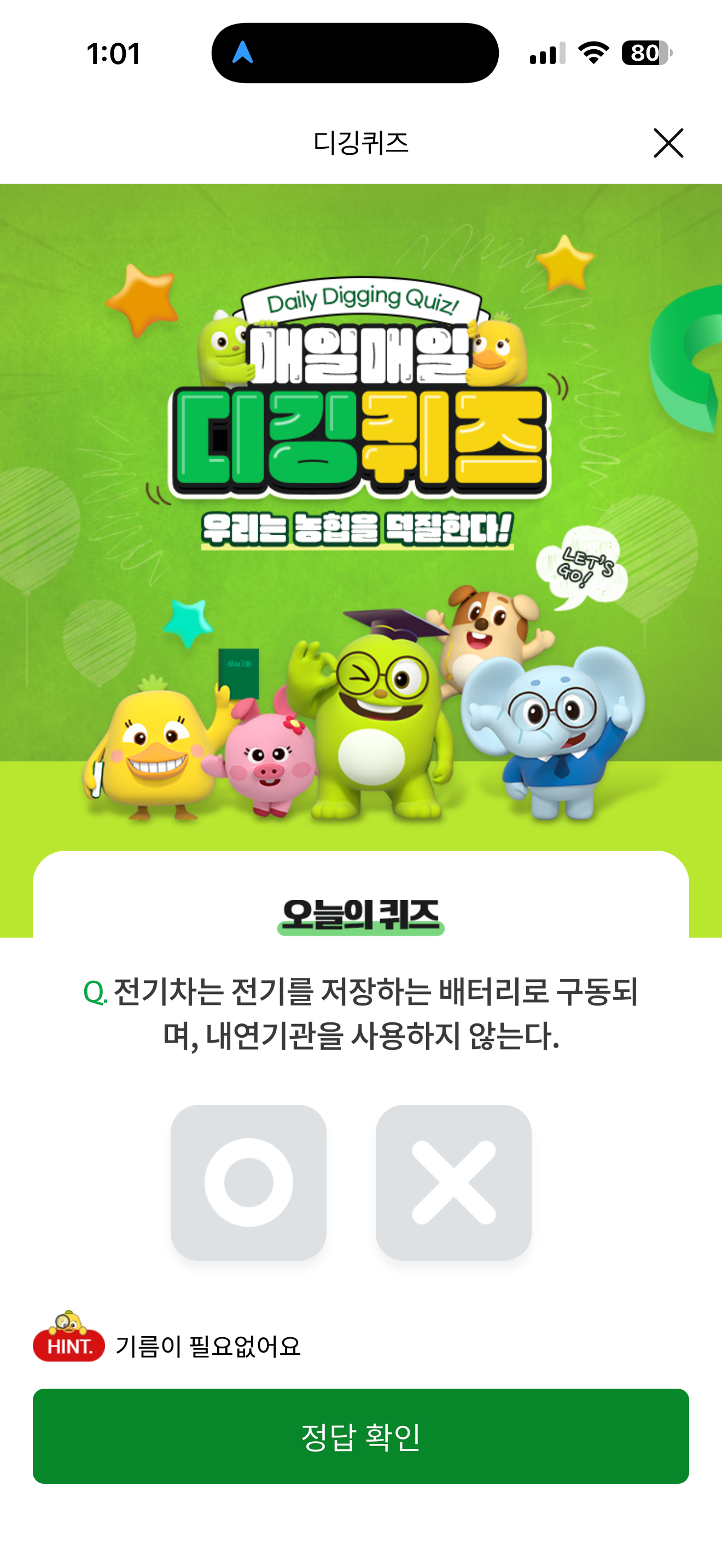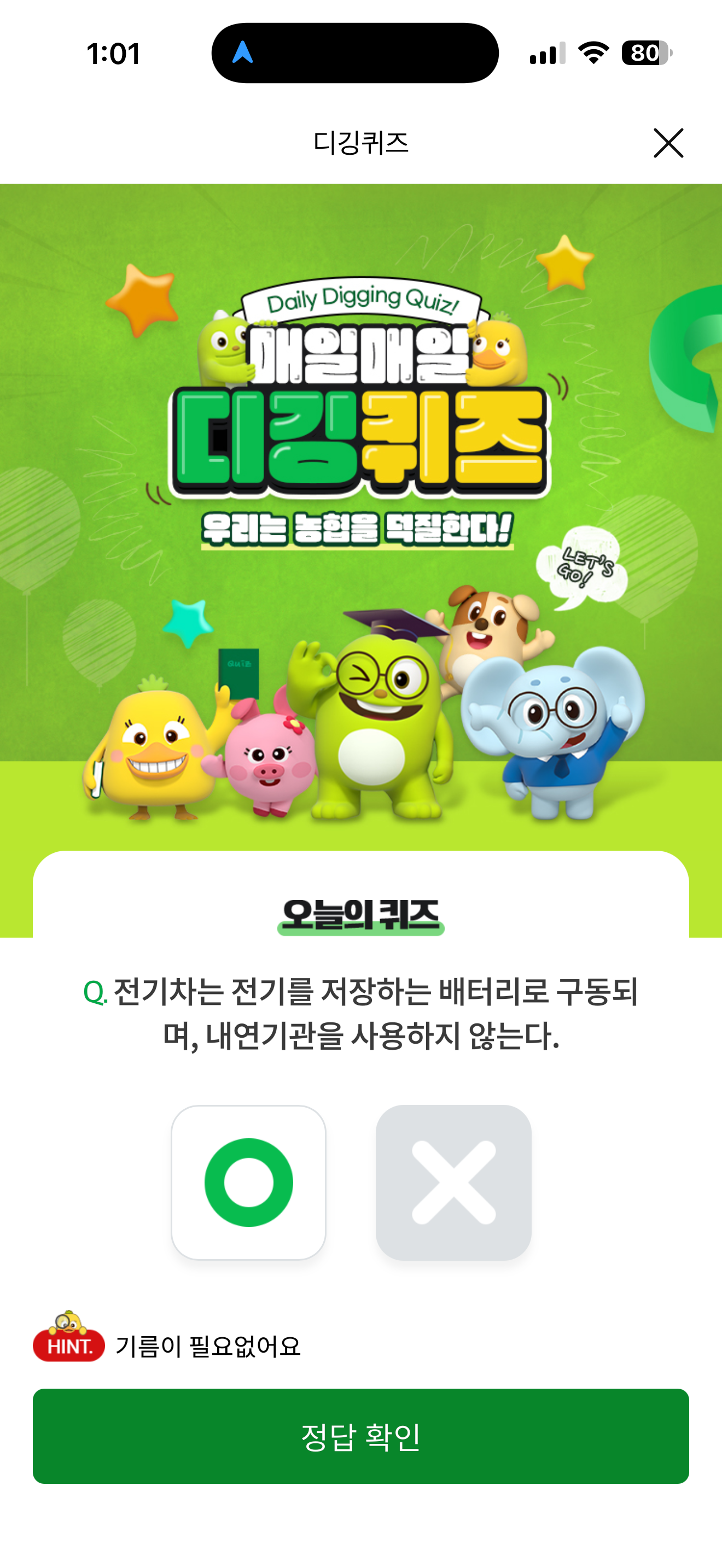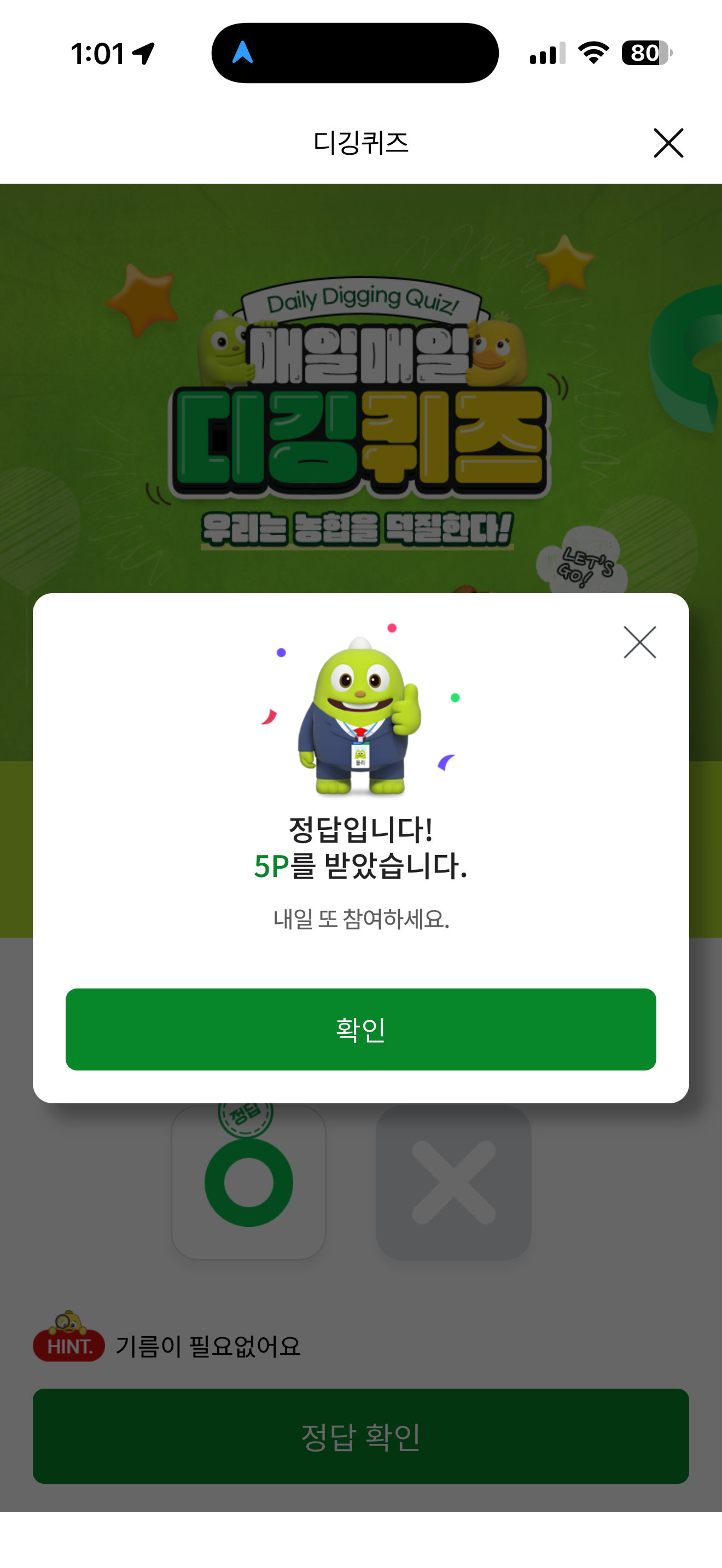 NH올원뱅크 디깅퀴즈 정답은 O 입니다