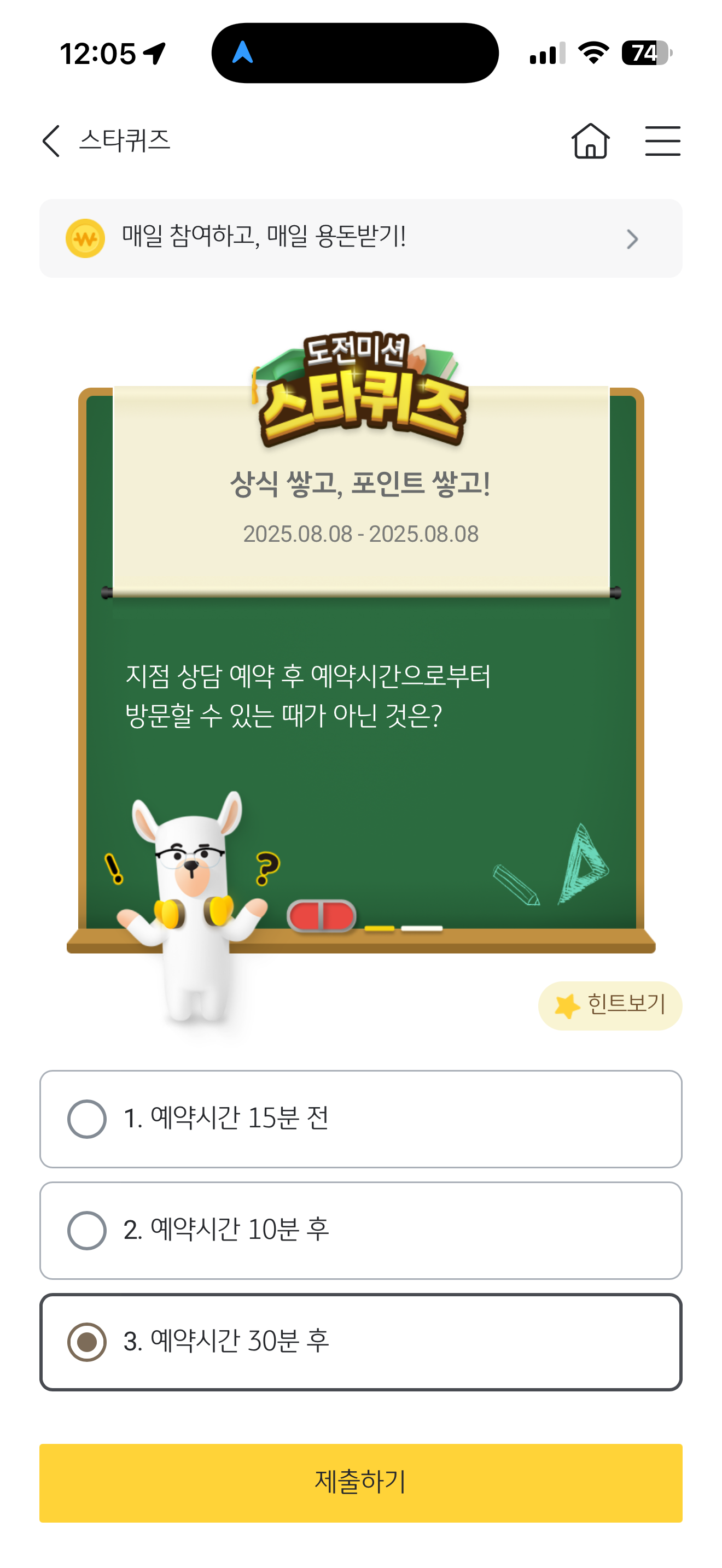 KB스타뱅킹 스타퀴즈 정답은 예약시간 30분 후 입니다