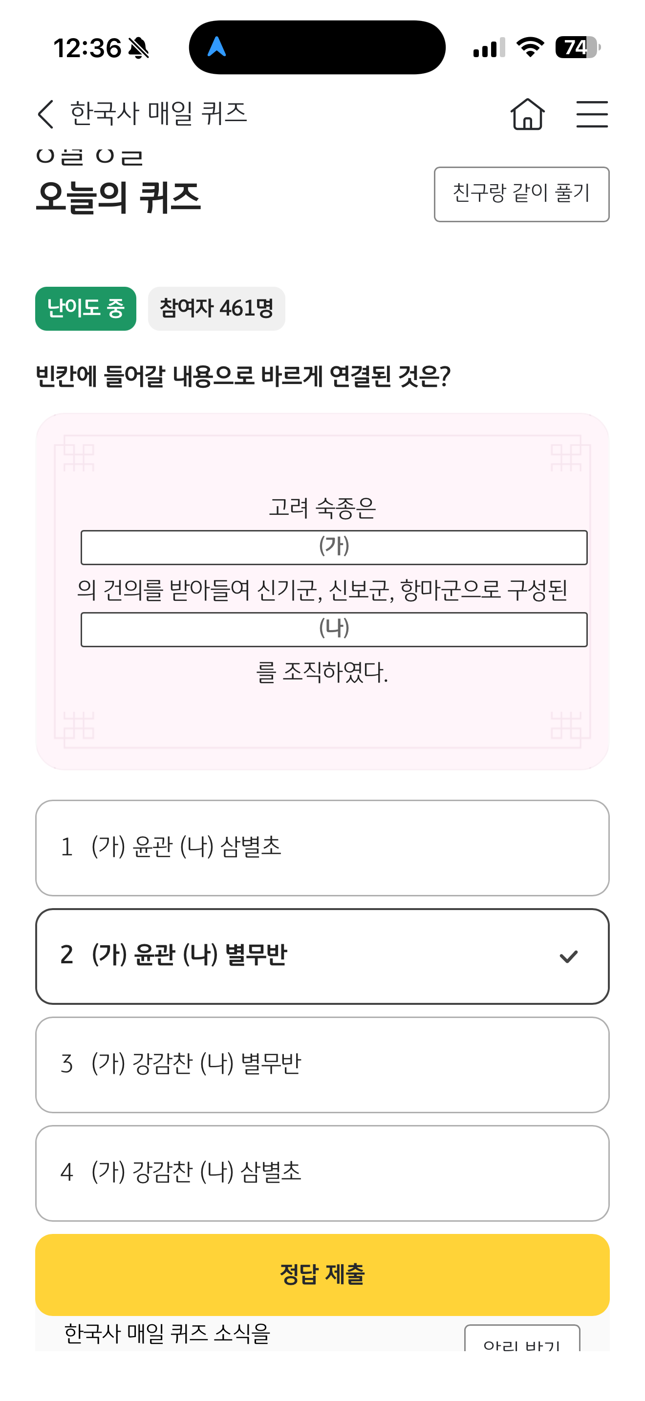 KB스타뱅킹 한국사 매일 퀴즈 정답은 (가) 윤관 (나) 별무반 입니다