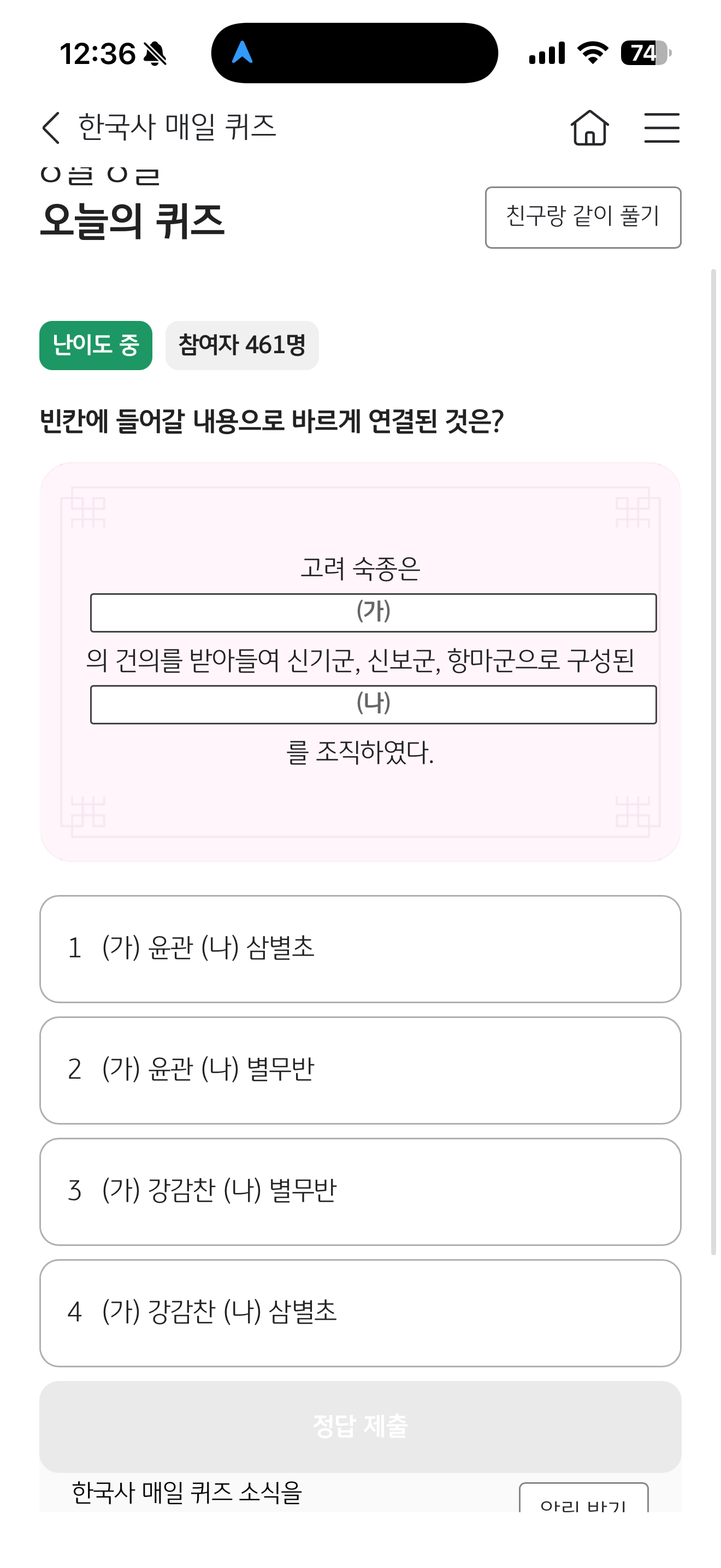 KB스타뱅킹 한국사 매일 퀴즈 정답은 (가) 윤관 (나) 별무반 입니다