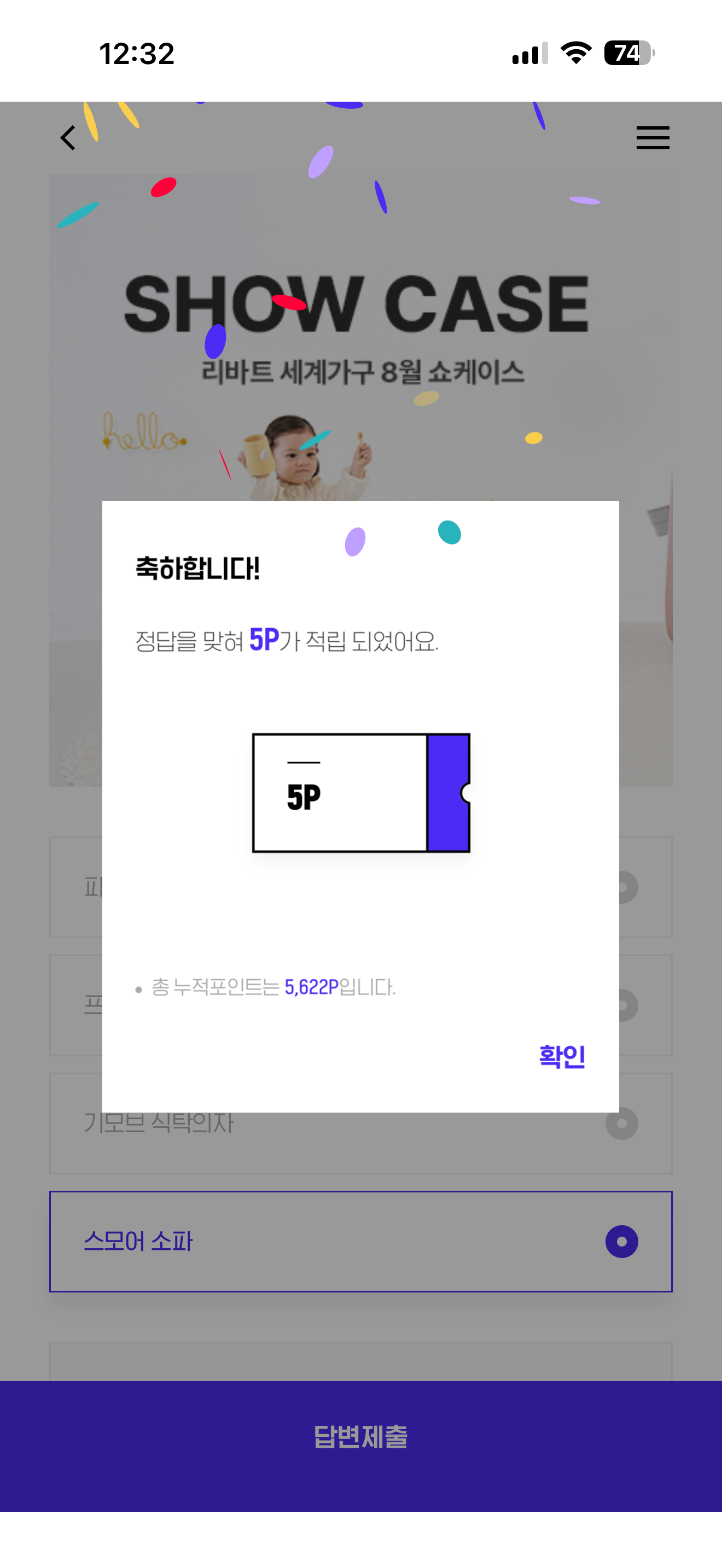 H포인트 퀴즈 정답은 스모어 소파 입니다