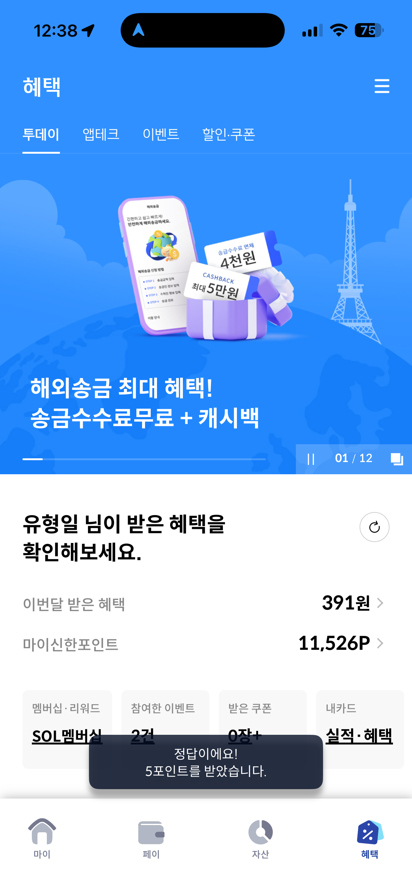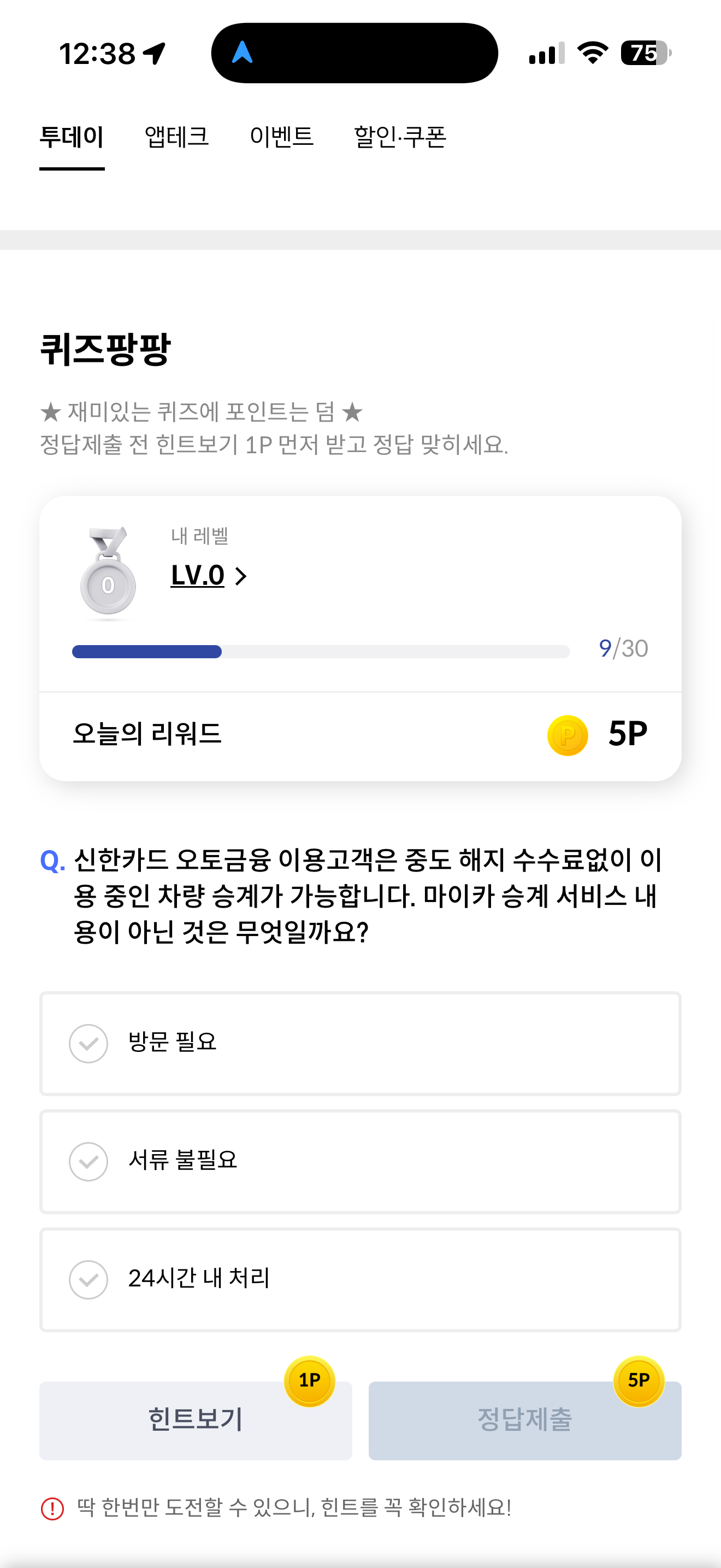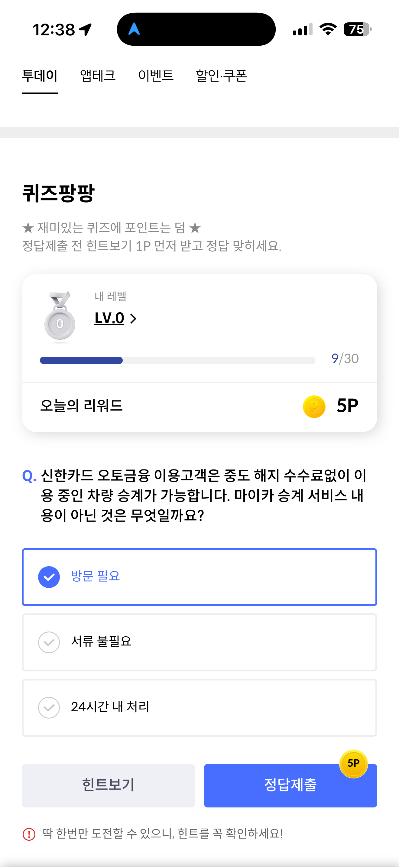 신한카드 퀴즈팡팡 정답은 방문 필요 입니다