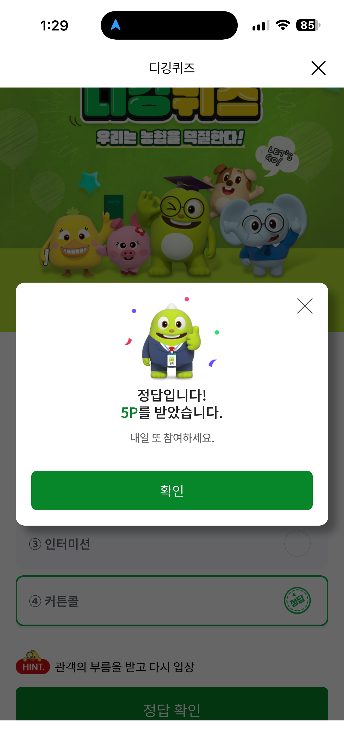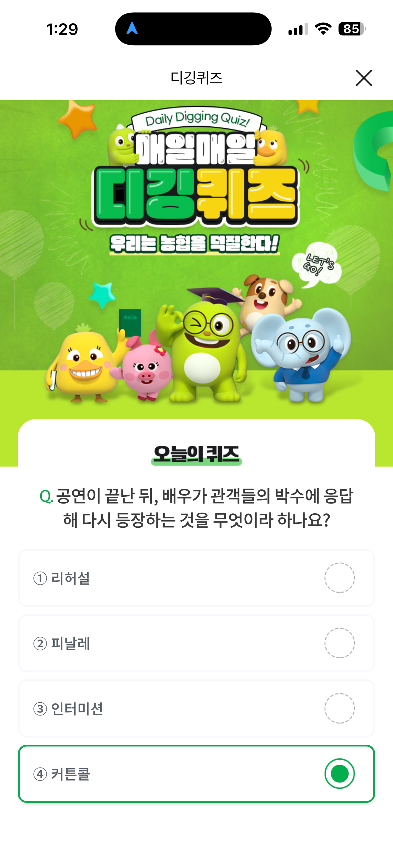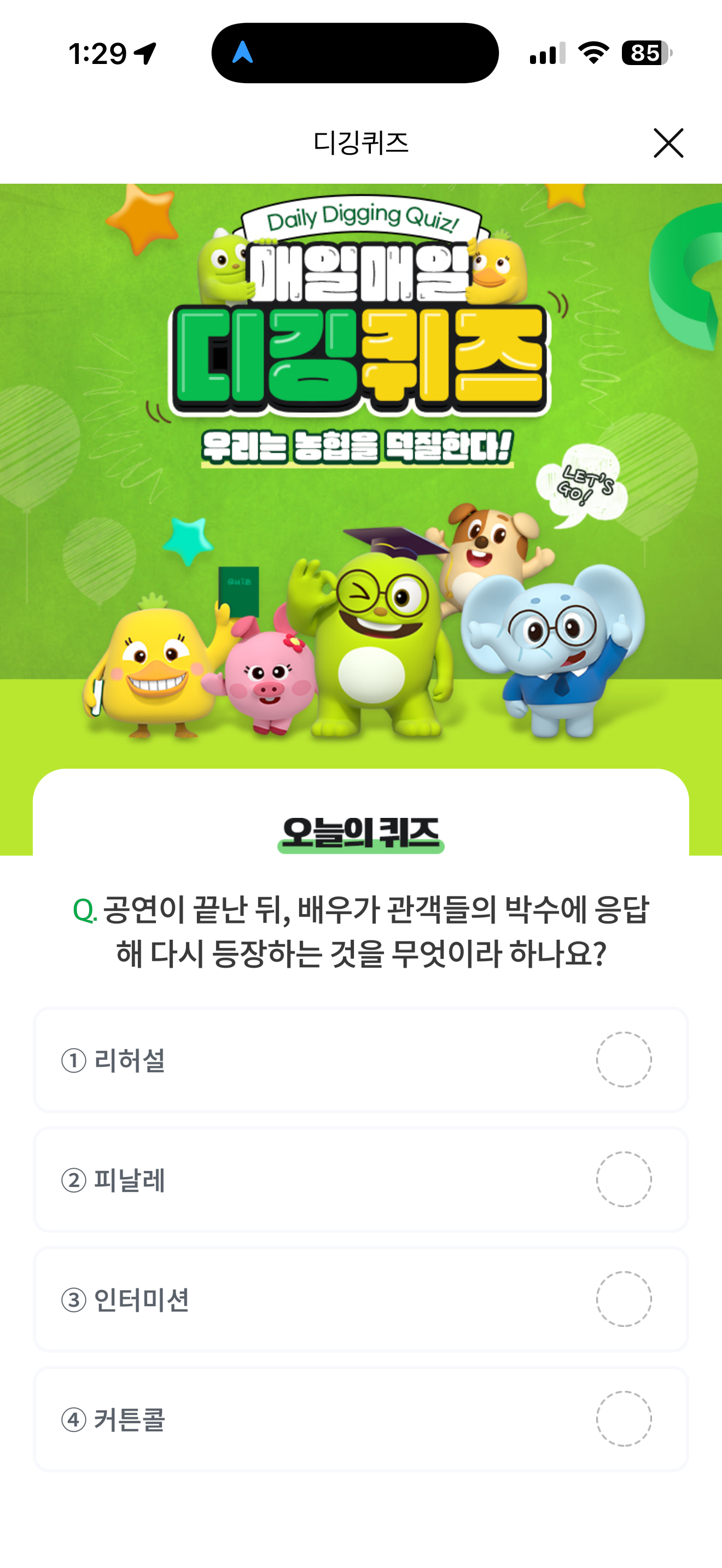 NH올원뱅크 디깅퀴즈 정답은 커튼콜 입니다