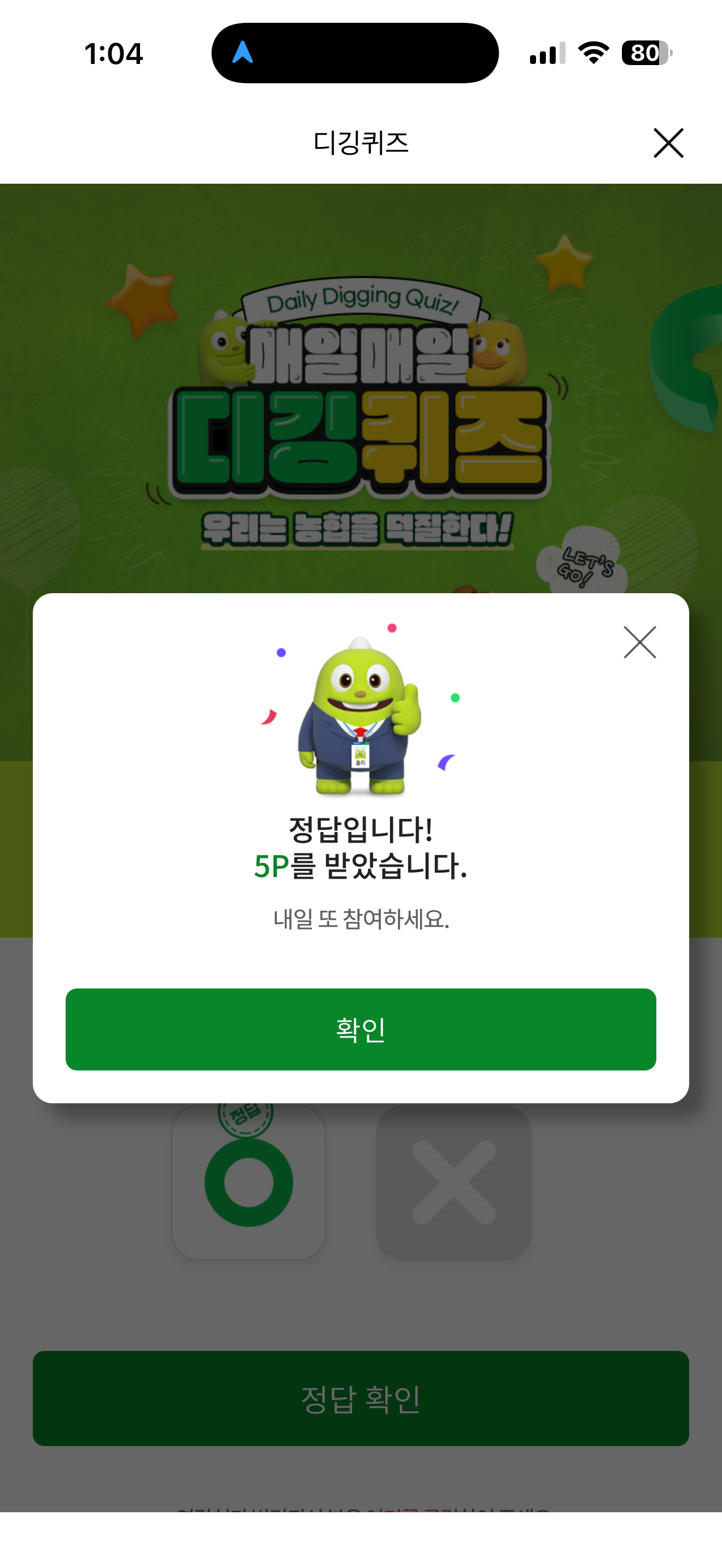 NH올원뱅크 디깅퀴즈 정답은 O 입니다