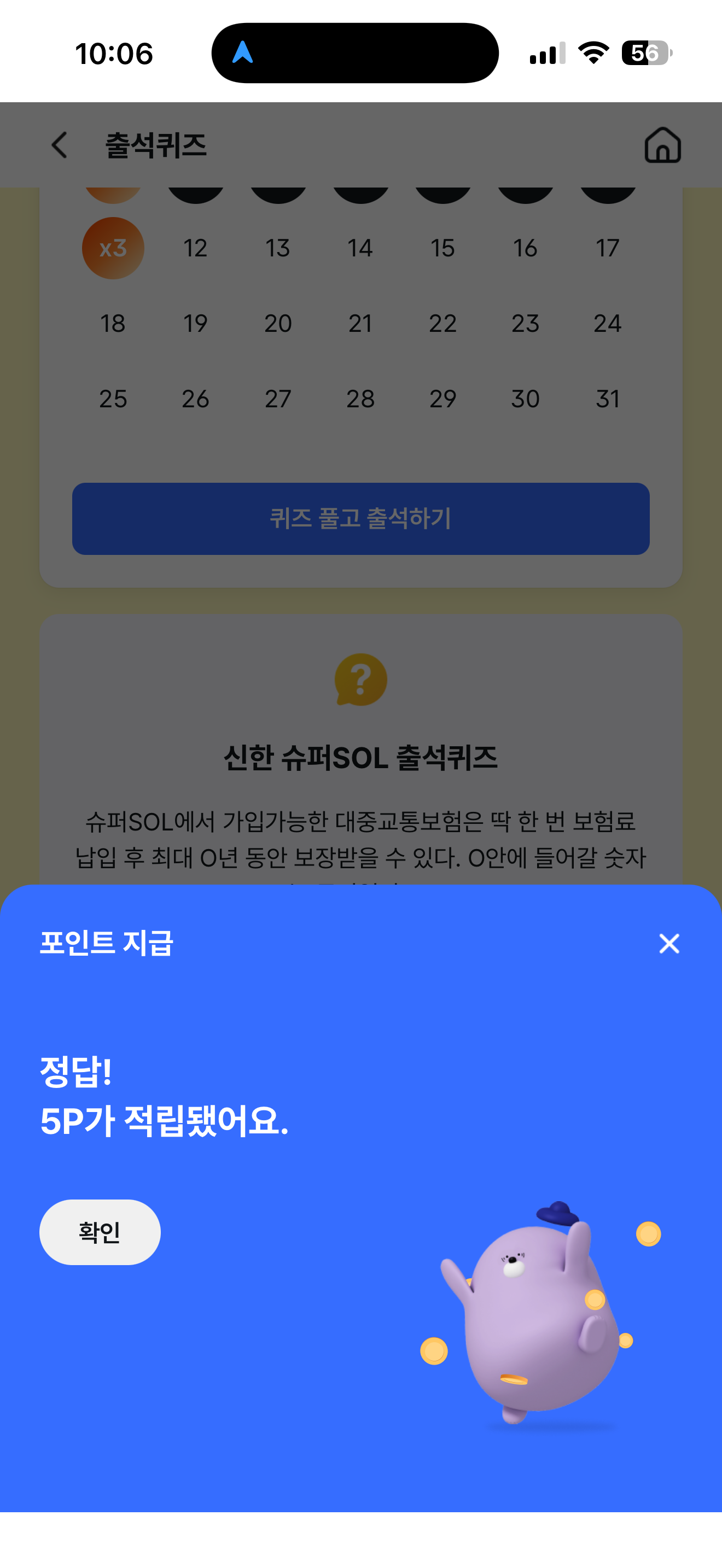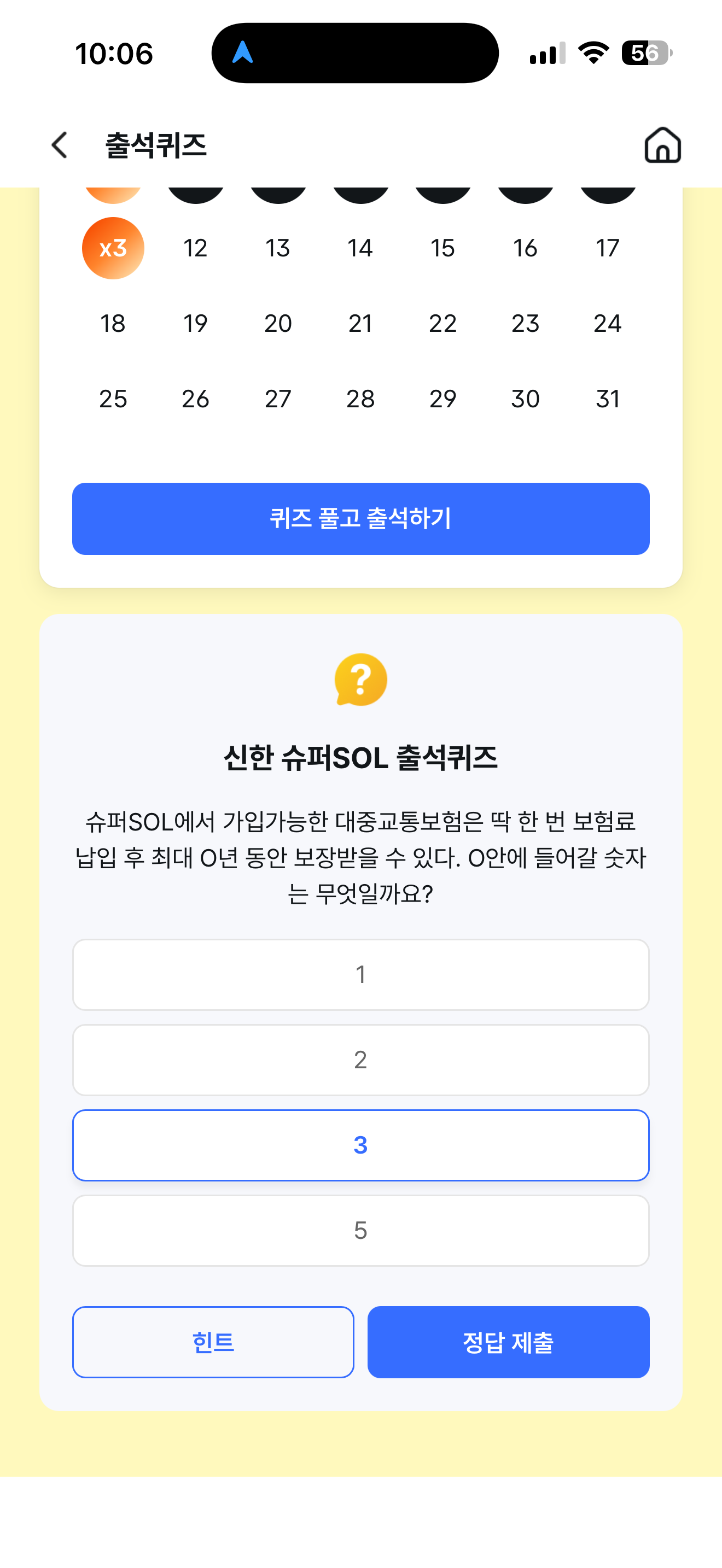 신한 슈퍼SOL 출석퀴즈 정답은 3 입니다