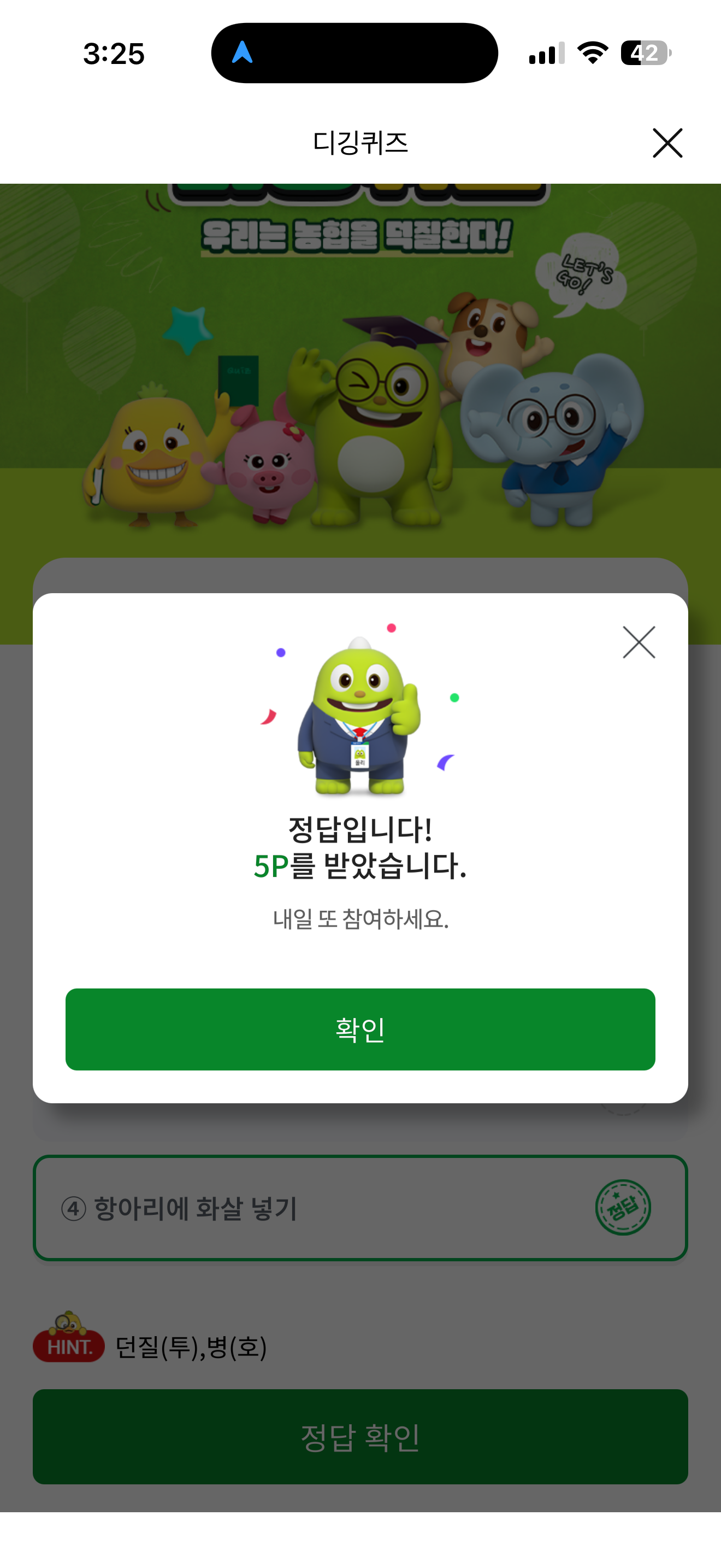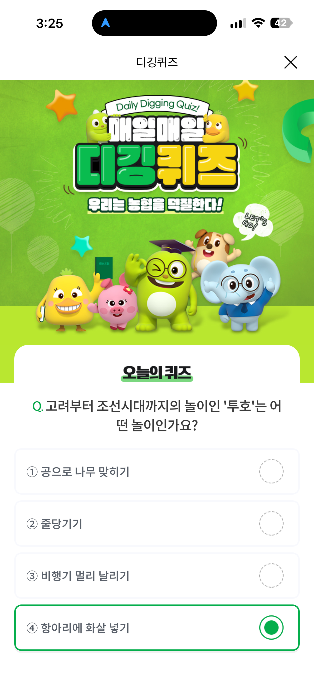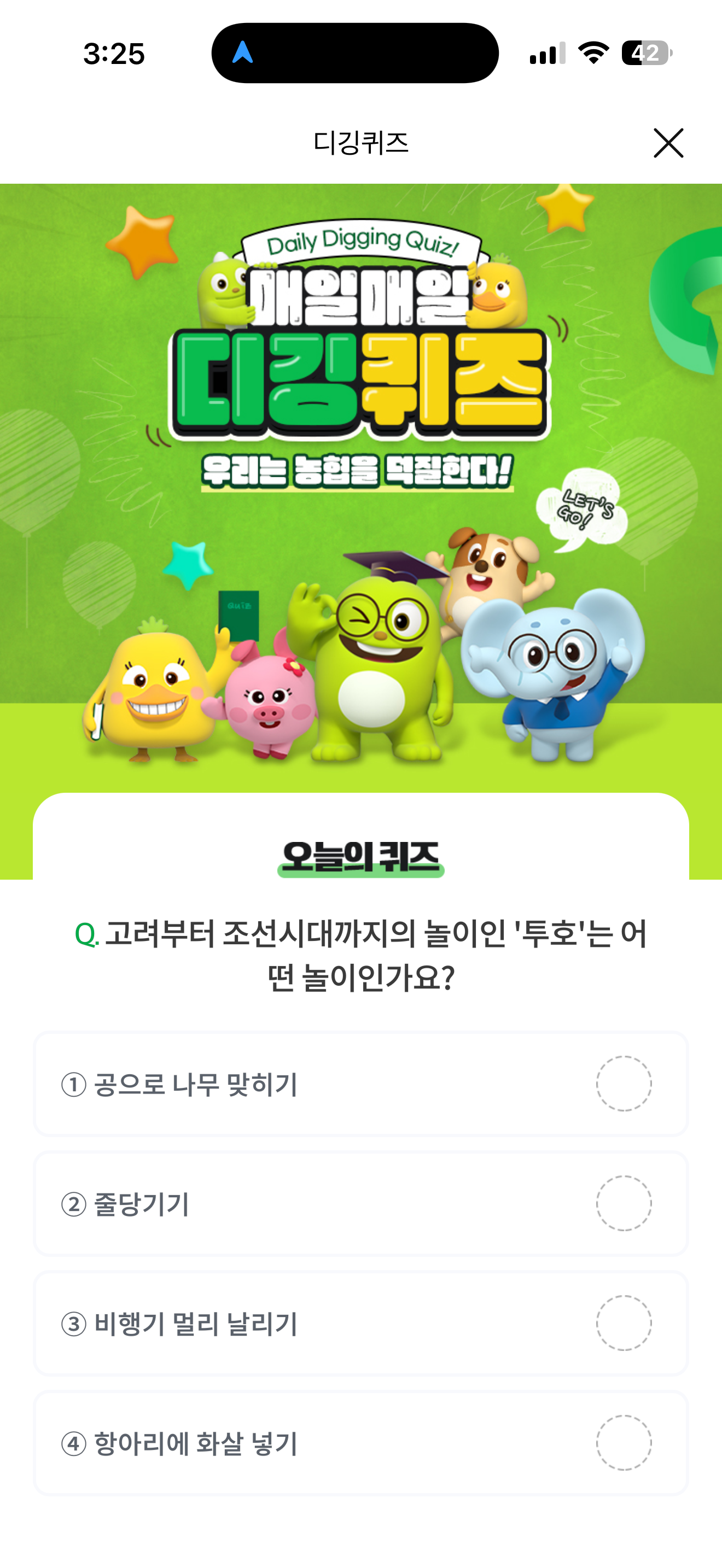 NH올원뱅크 디깅퀴즈 정답은 항아리에 화살 넣기 입니다
