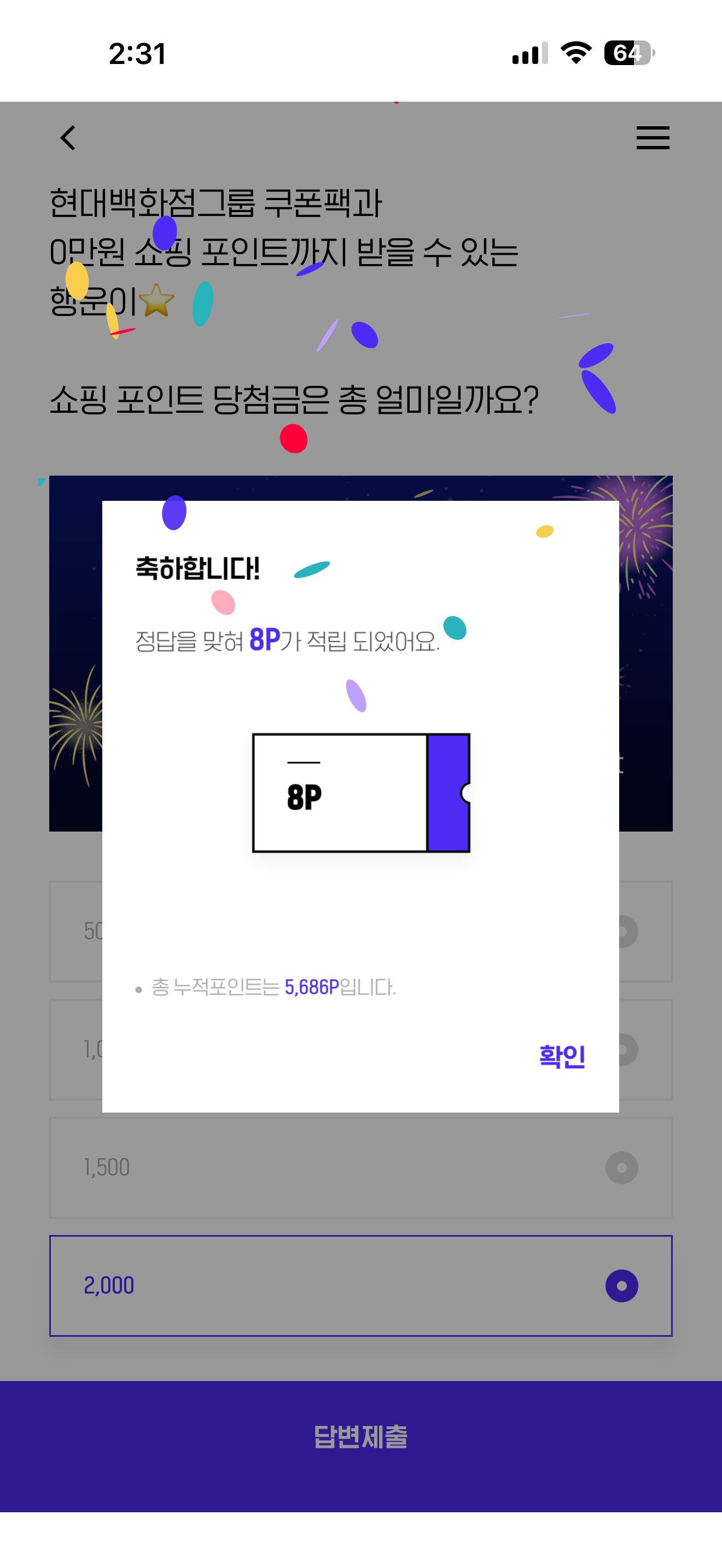 H포인트 퀴즈 정답은 2,000 입니다