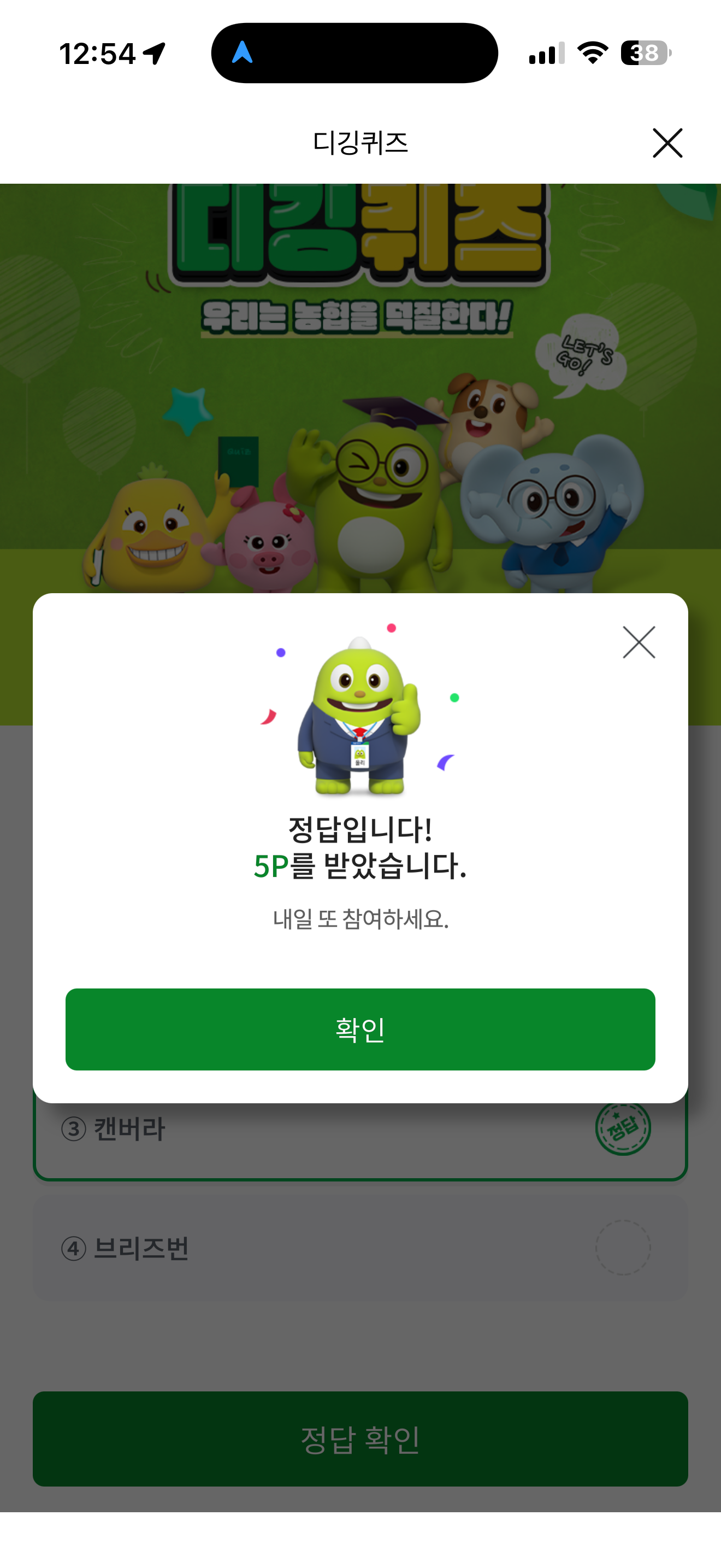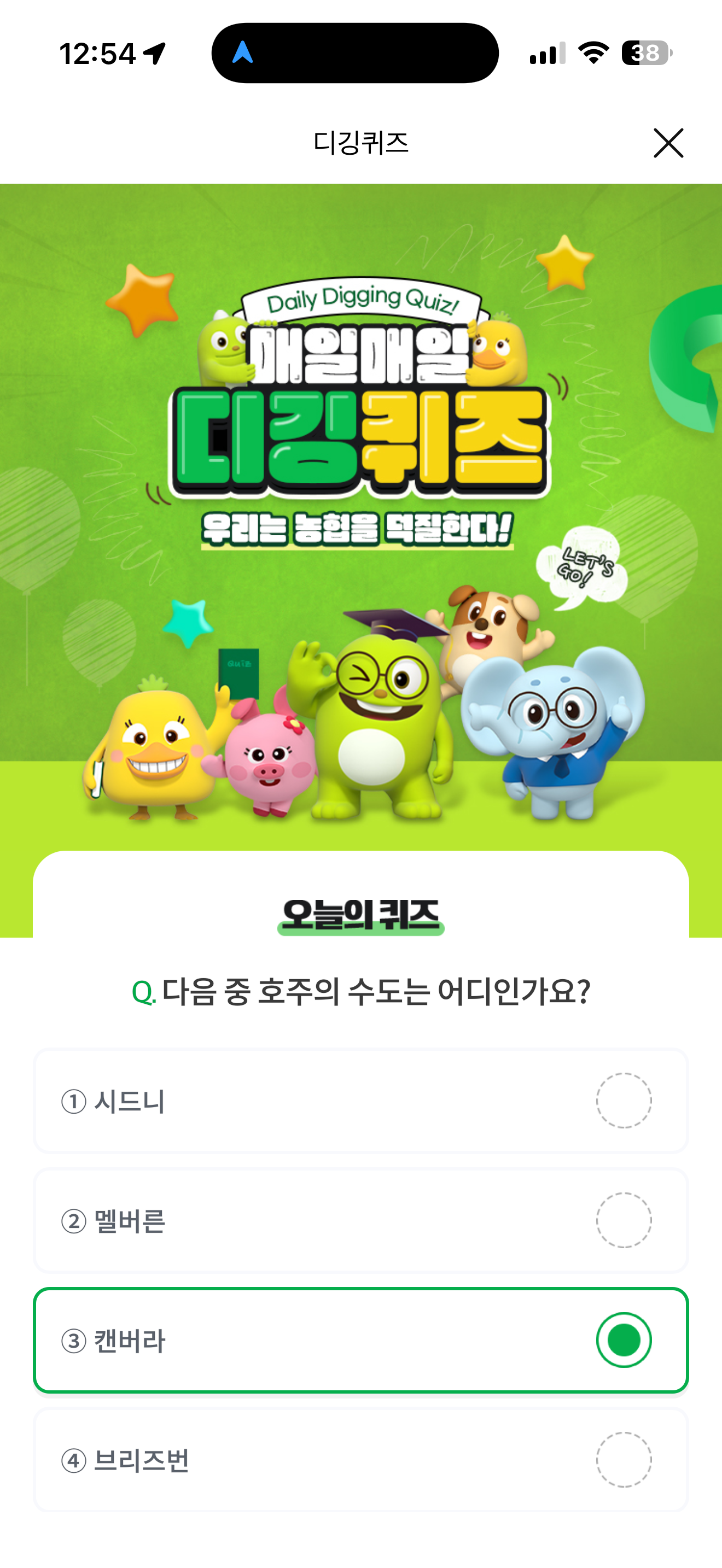 NH올원뱅크 디깅퀴즈 정답은 캔버라 입니다