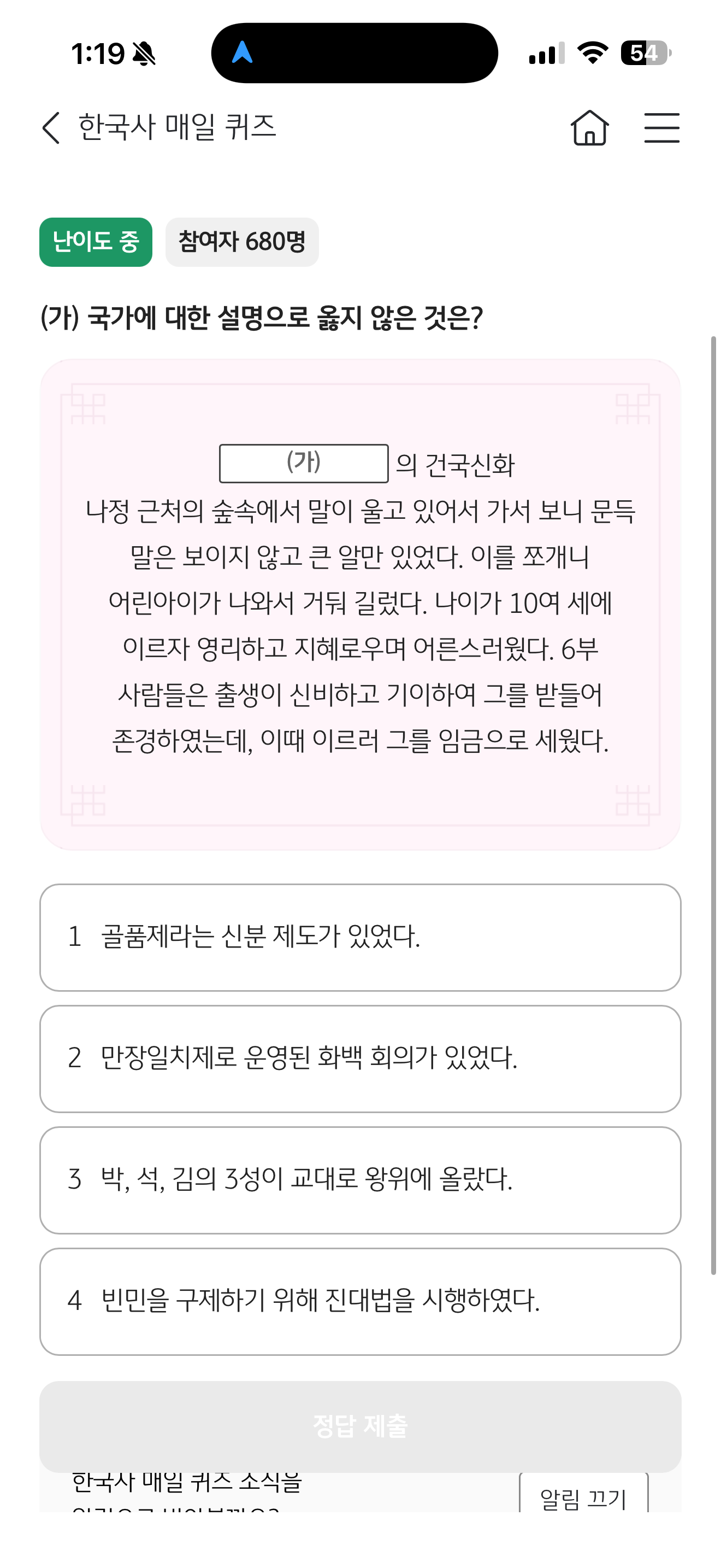 (가) 국가에 대한 설명으로 옳지 않은 것은? (가)의 건국신화 나정 근처의 숩속에서 말이 울고 있어서 가서 보니 문득 말은 보이지 않고 큰 알만 있었다. 이를 쪼개니 어린아이가 나와서 거둬 길렀다. 나이가 10여 세에 이르자 영리하고 지혜로우며 어른스러웠다. 6부 사람들은 출생이 신비하고 기이하여 그를 받을어 존경하였는데, 이때 이르러 그를 임금으로 세웠다