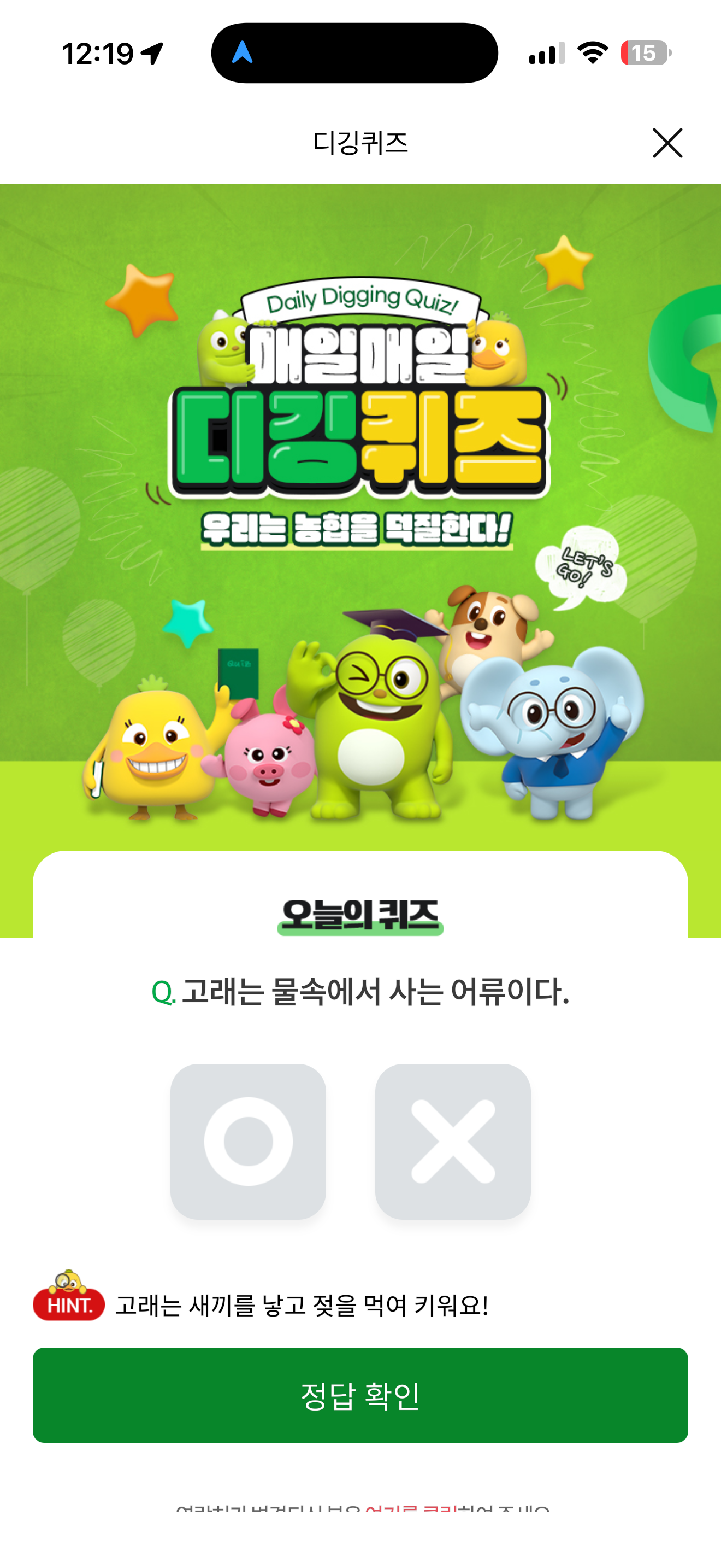 NH올원뱅크 디깅퀴즈 8월 21일 정답(고래는 물속에서 사는 어류이다)