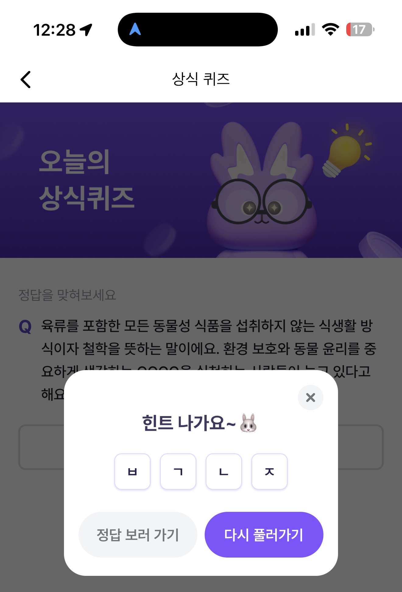비트버니 오늘의 퀴즈 정답은 비거니즘 입니다
