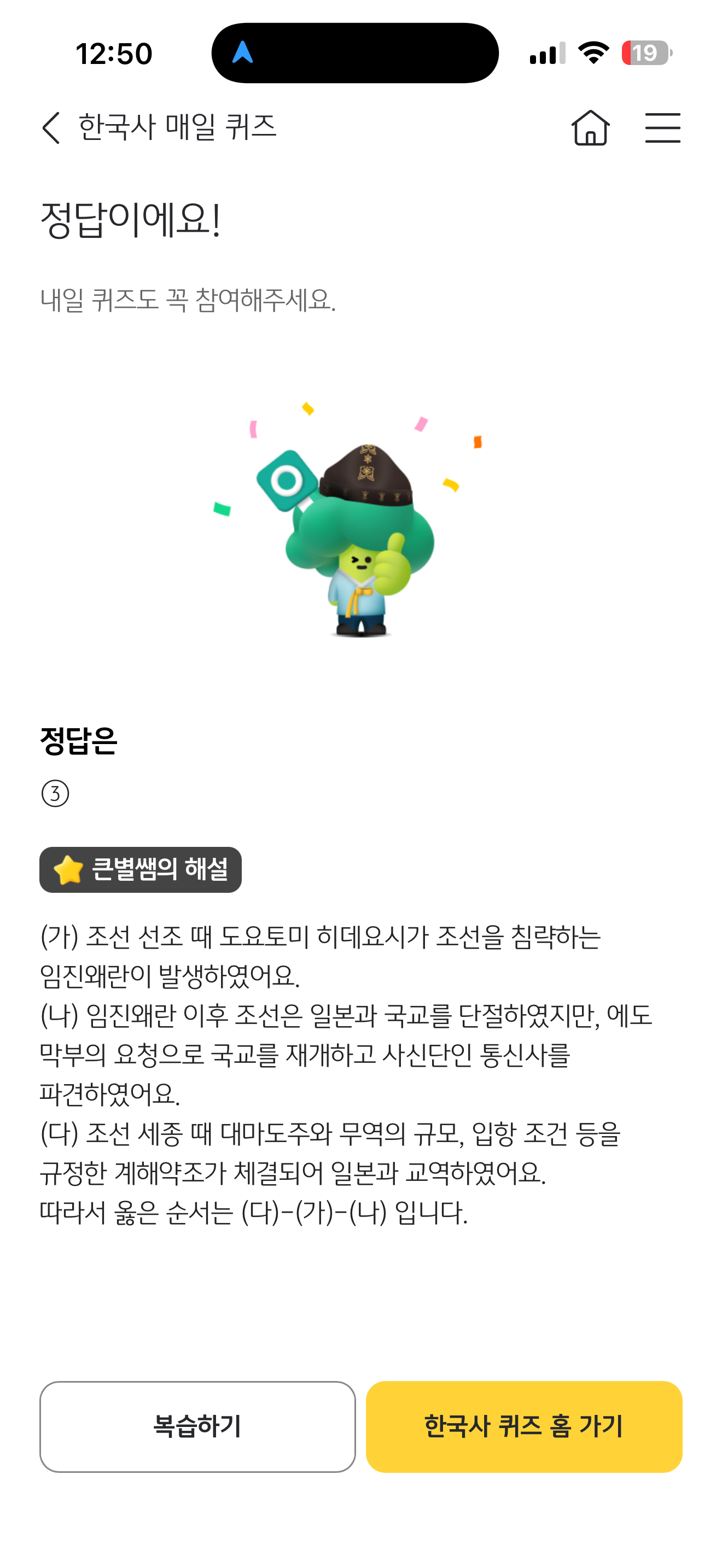 KB스타뱅킹 한국사 매일 퀴즈 정답은 (다)-(가)-(나) 입니다