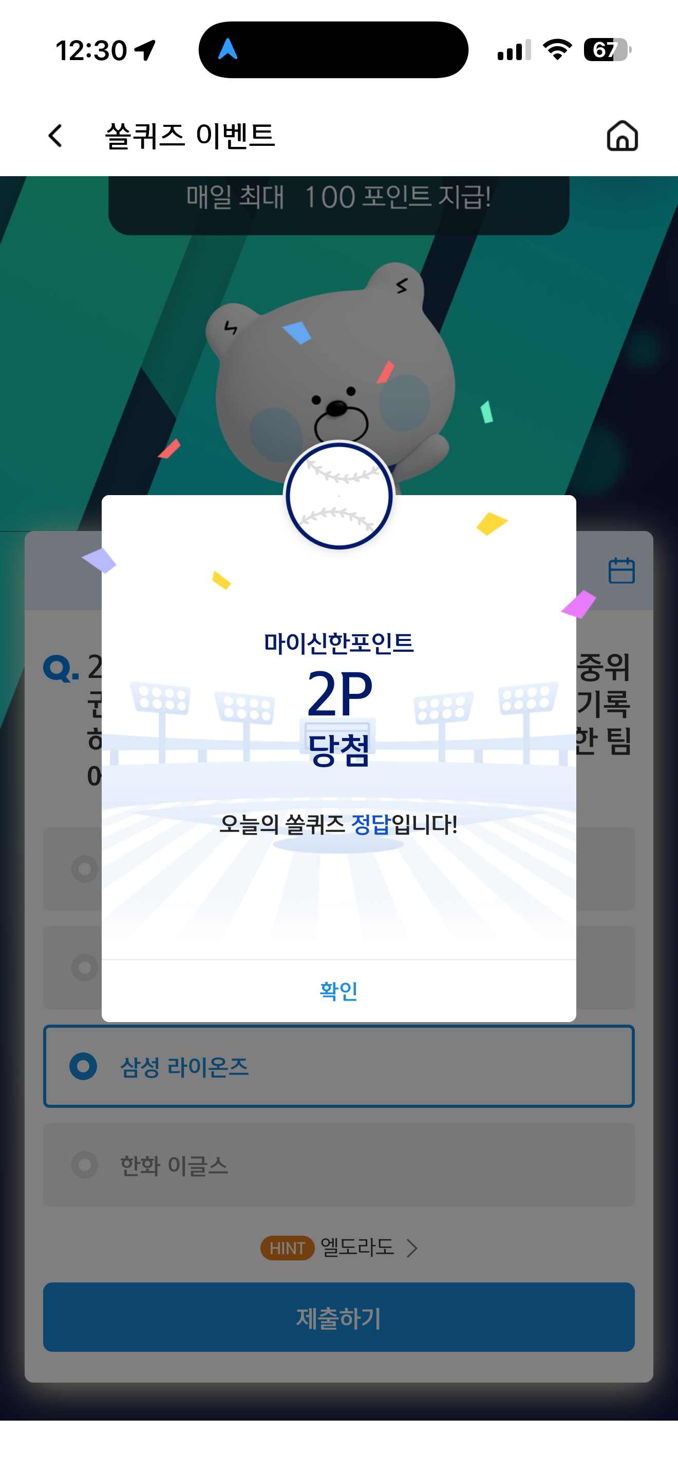 신한 슈퍼SOL 야구/상식 쏠퀴즈 정답은 삼성 라이온즈 입니다