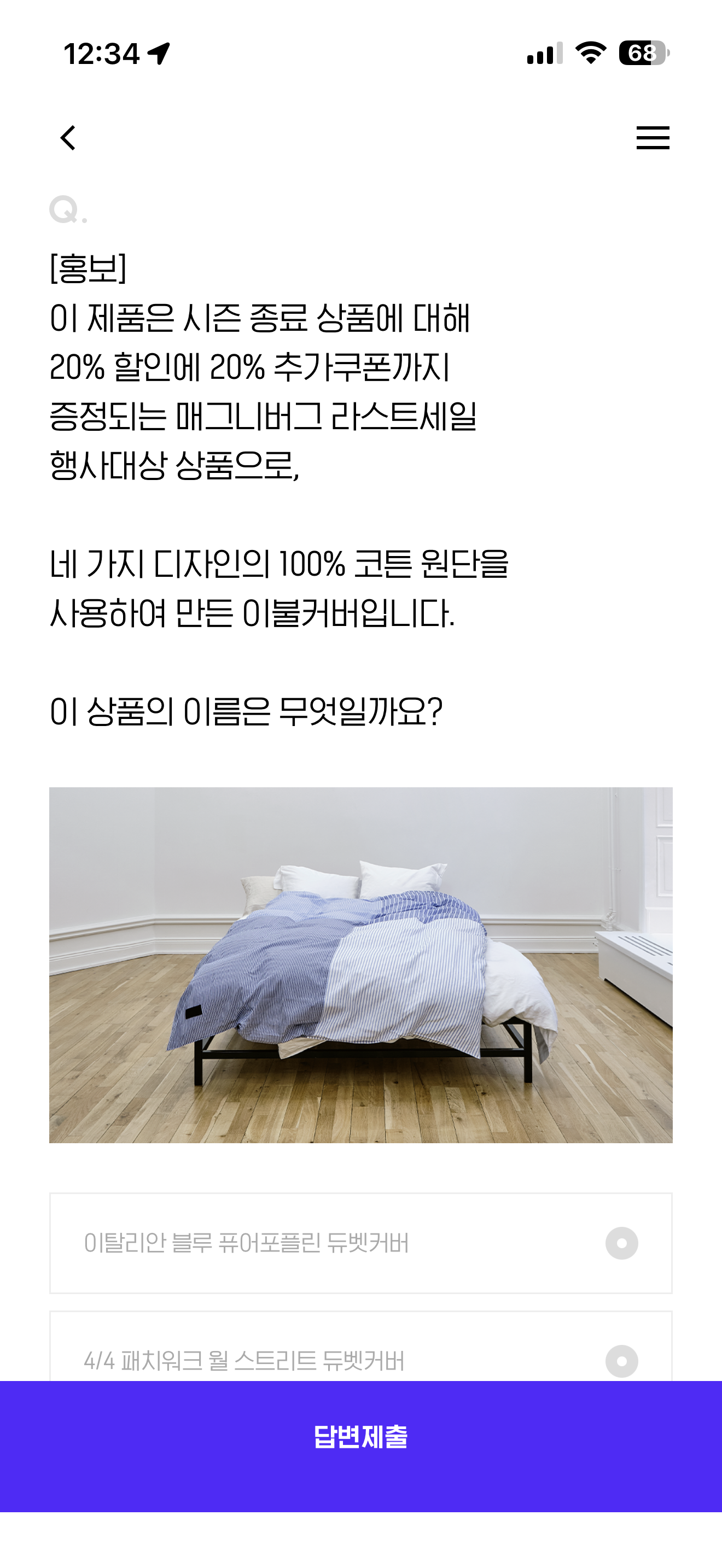 H포인트 퀴즈 정답은 4/4 패치워크 월 스트리트 듀벳커버 입니다