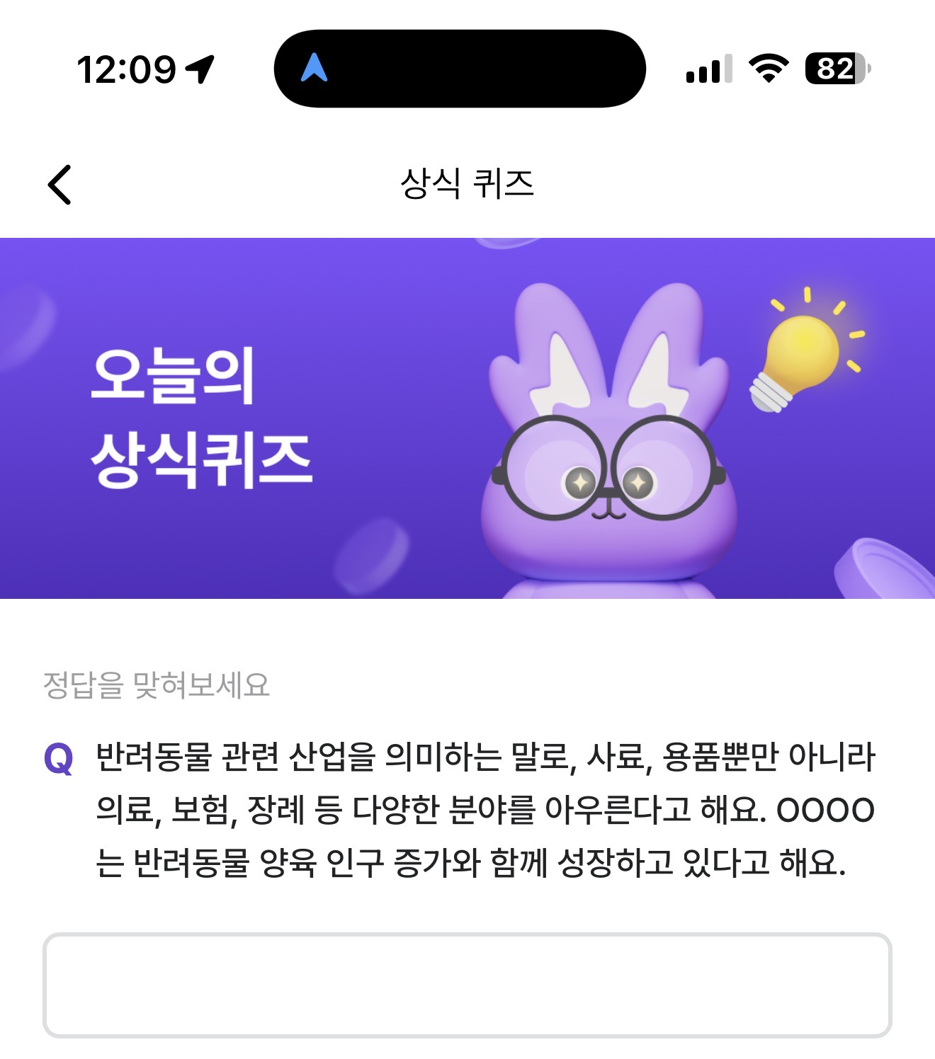 반려동물 관련 산업을 의미하는 말로, 사료, 용품뿐만 아니라 의료, 보험, 장례 등 다양한 분야를 아우른다고 해요. OOOO는 반려동물 양육 인구 증가와 함께 성장하고 있다고 해요. 주관식 퀴즈인데요.