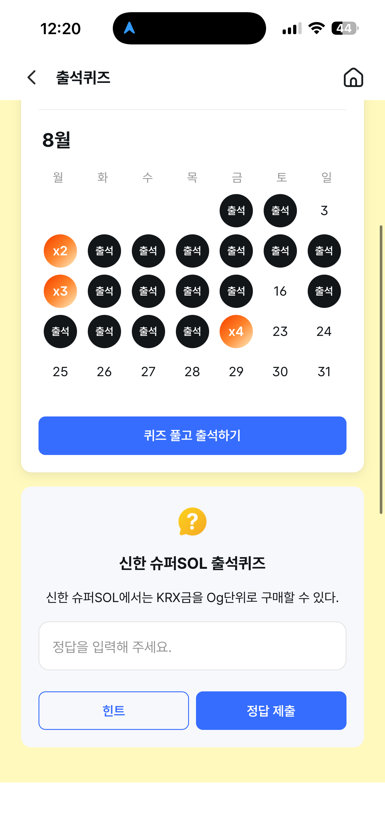 신한 슈퍼SOL 출석퀴즈 정답은 1 입니다