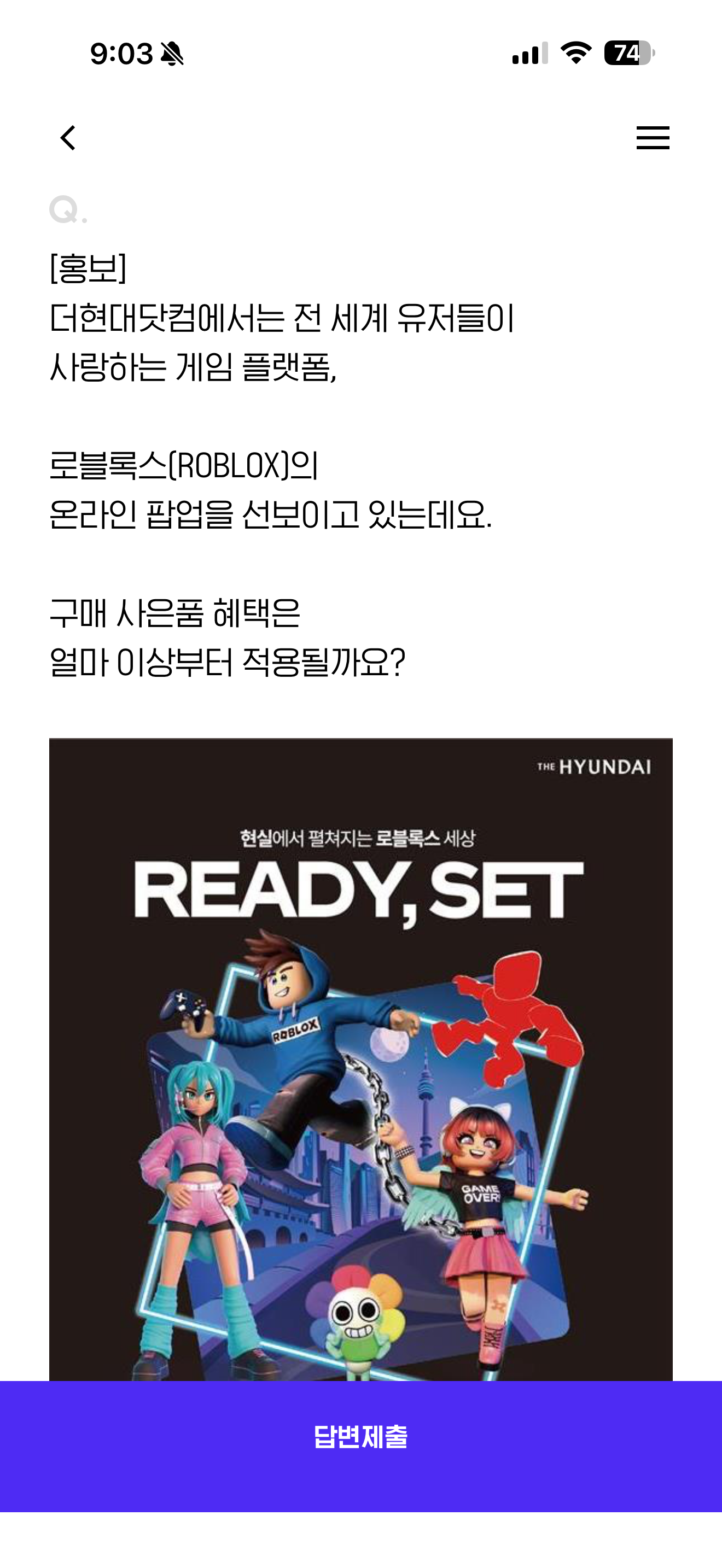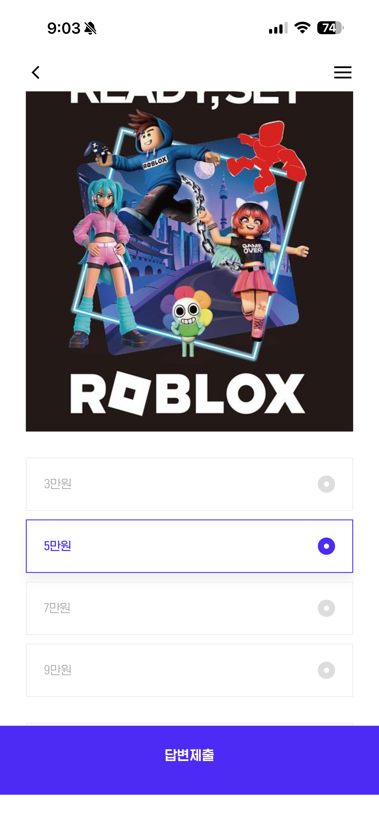 더현대닷컴에서는 전 세계 유저들이 사랑하는 게임 플랫폼, 로블록스(ROBLOX)의 온라인 팝업을 선보이고 있는데요. 구매 사은품 혜택은 얼마 이상부터 적용될까요? 보기는 1. 3만원 2. 5만원 3. 7만원 4. 9만원 입니다