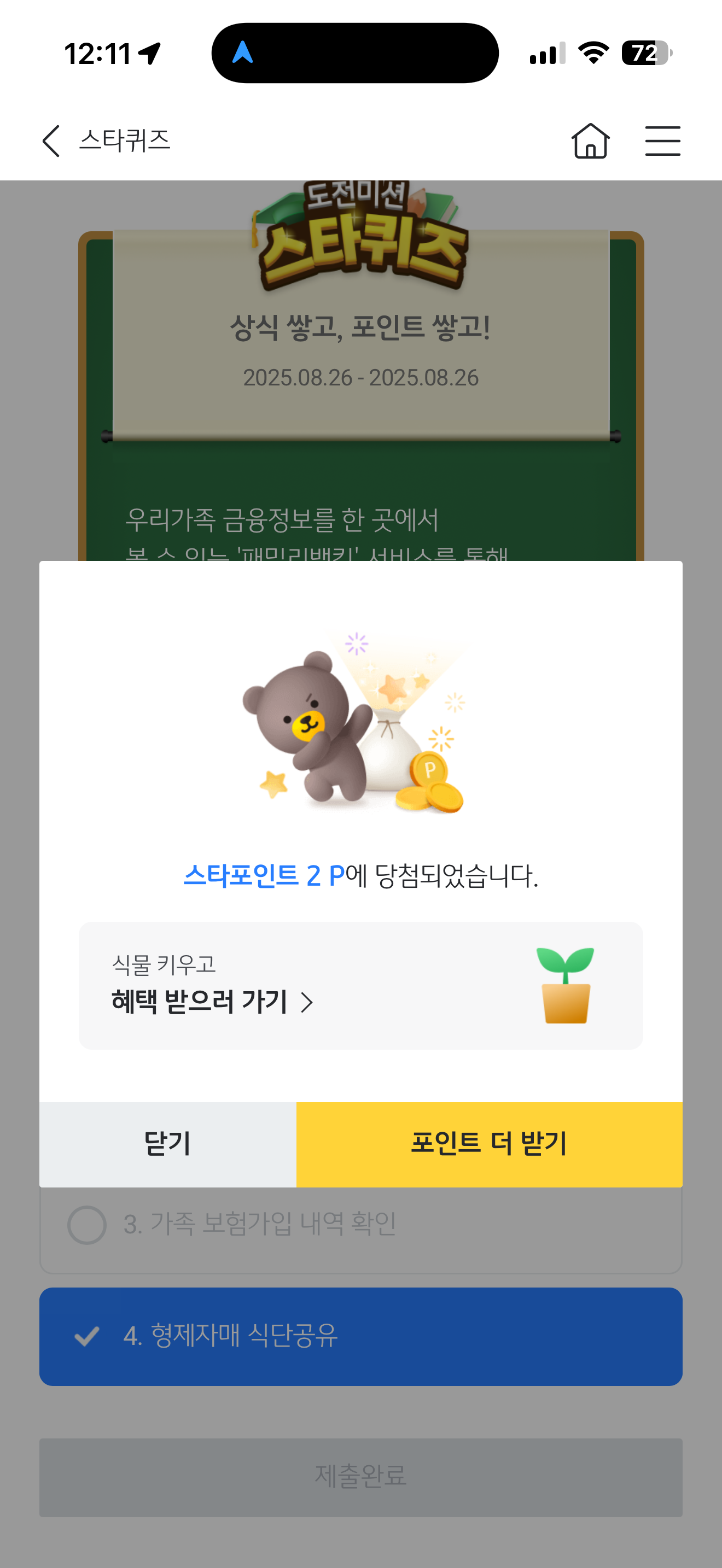 KB스타뱅킹 스타퀴즈 정답은 현제자매 식단공유 입니다